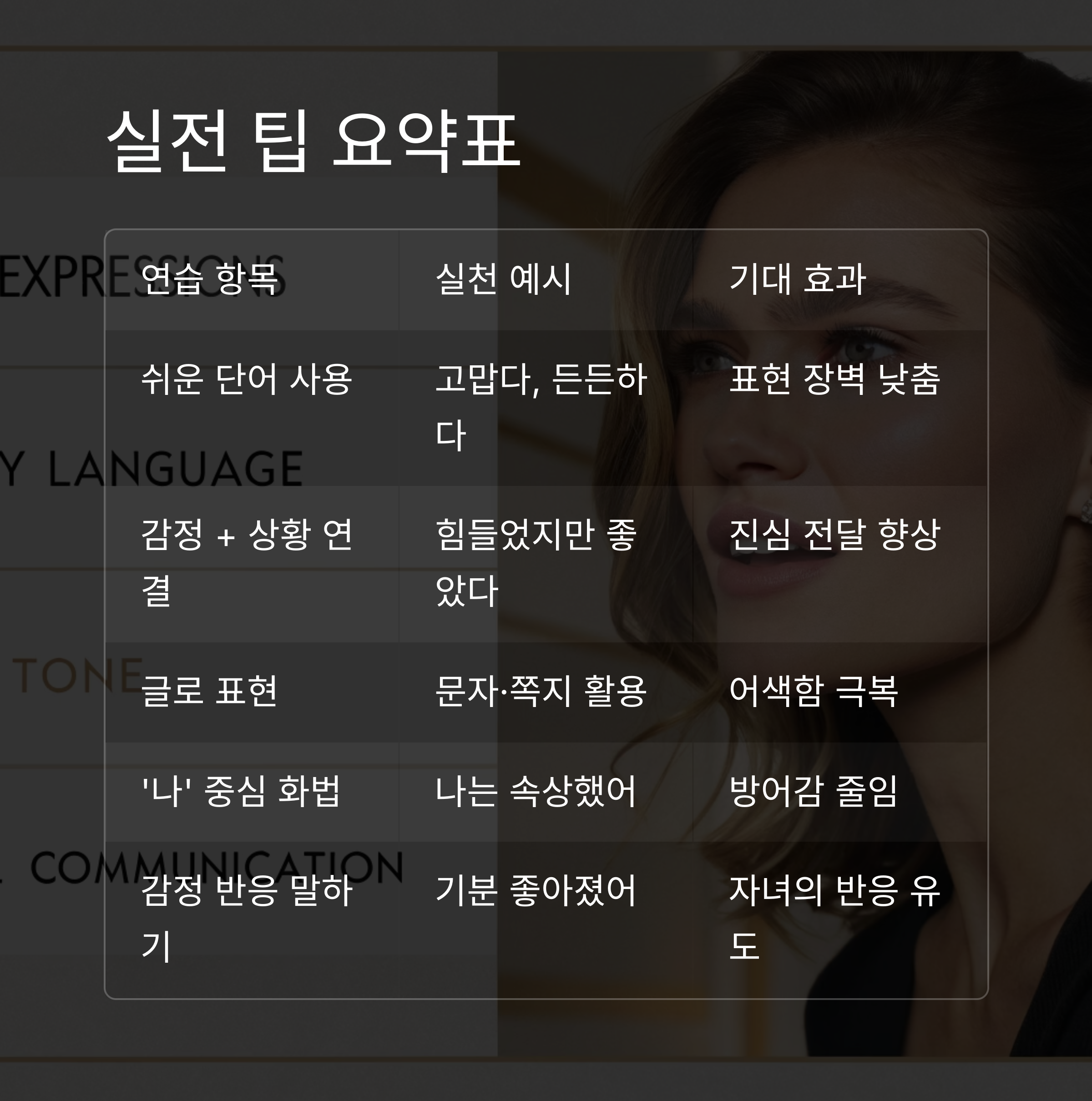 이 글에서는 감정 표현이 익숙하지 않은 부모님들이 일상에서 실천할 수 있는 감정 표현 훈련 팁 7가지를 소개합니다.
