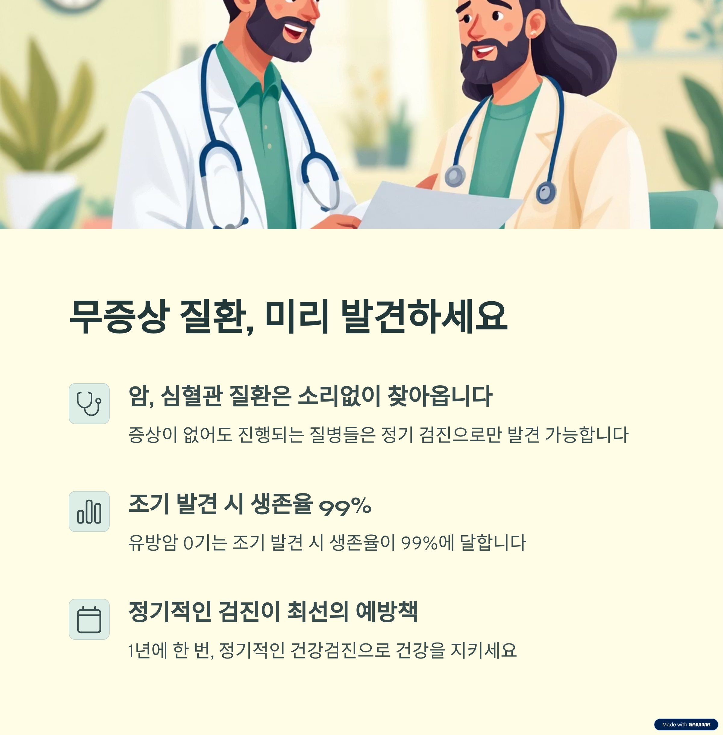 "아무 이상 없다고 느껴질 때, 검진이 가장 절실합니다"