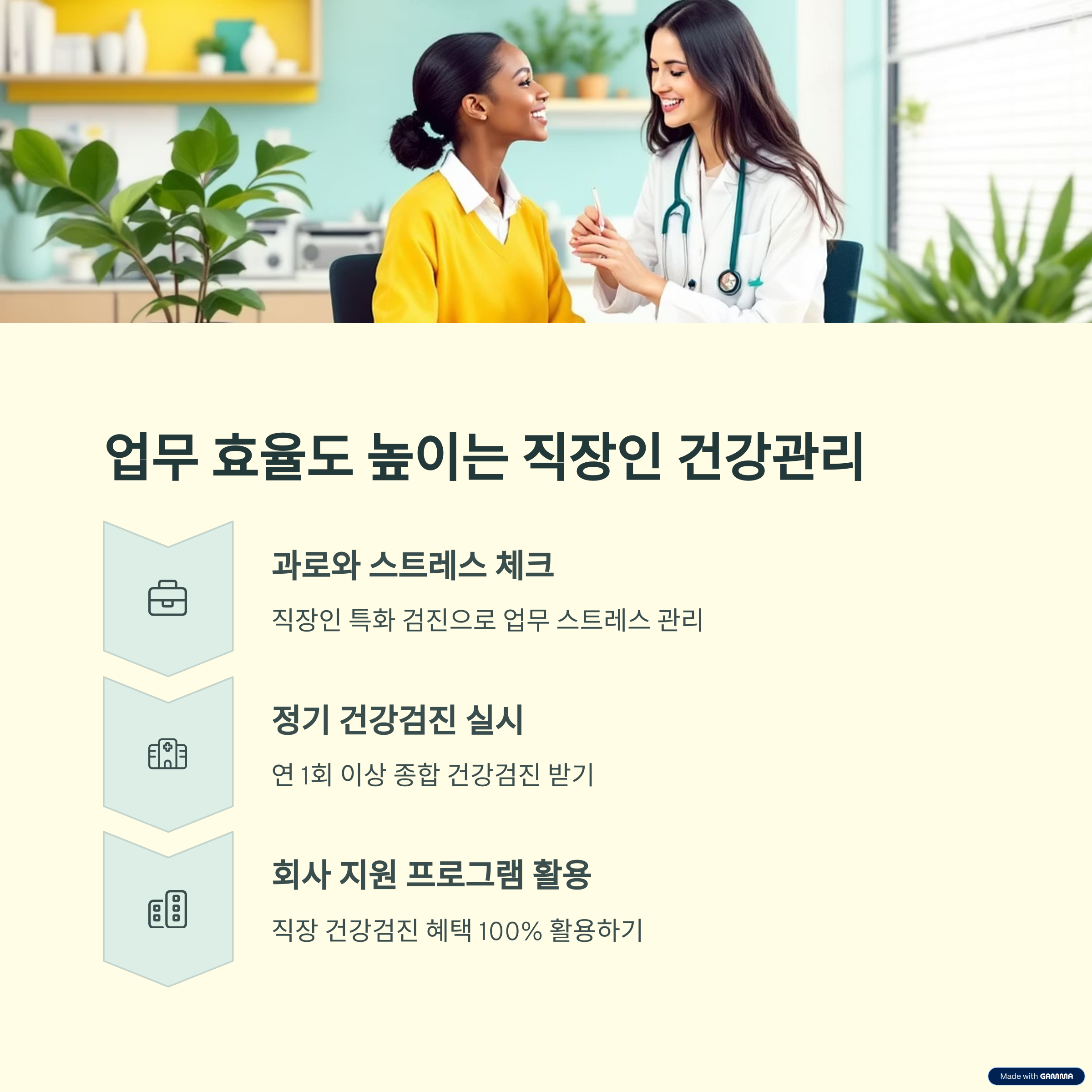 정기적인 검진은 직장인의 생산성을 유지하는 핵심 루틴입니다.