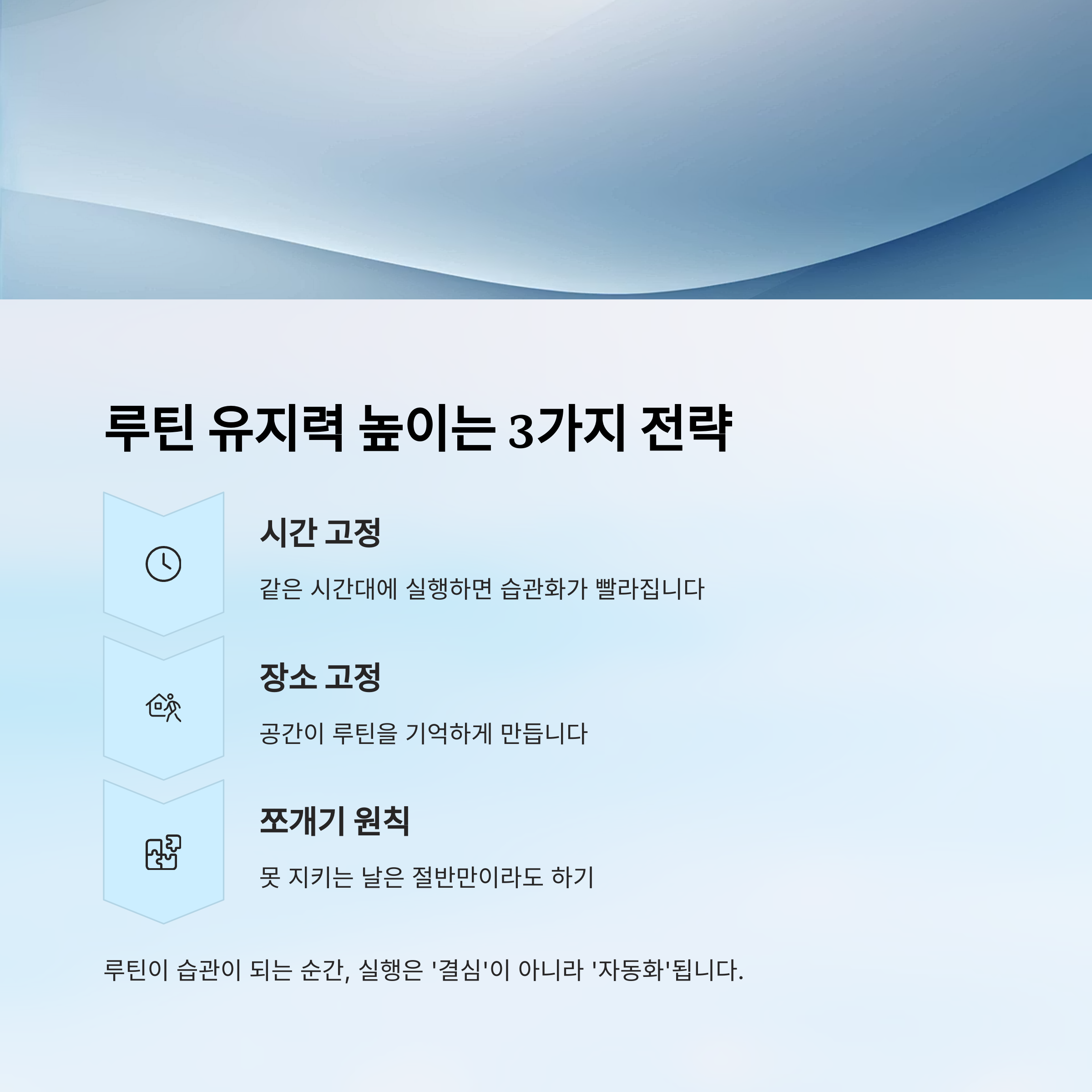 핵심: 루틴이 습관이 되는 순간, 실행은 ‘결심’이 아니라 ‘자동화’됩니다.