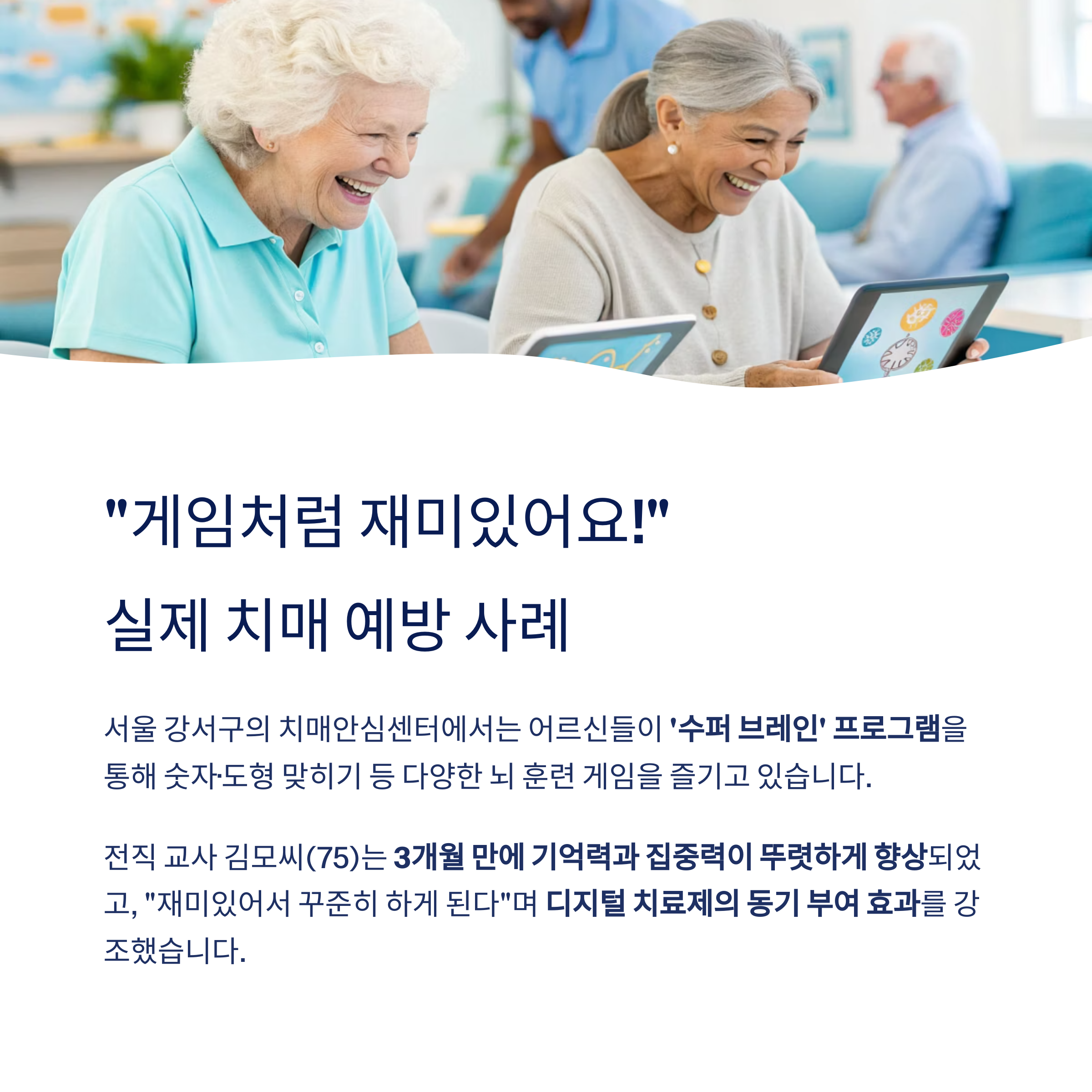 | 디지털 치료제 사용 | 인지 점수 평균 5점 이상 상승 |