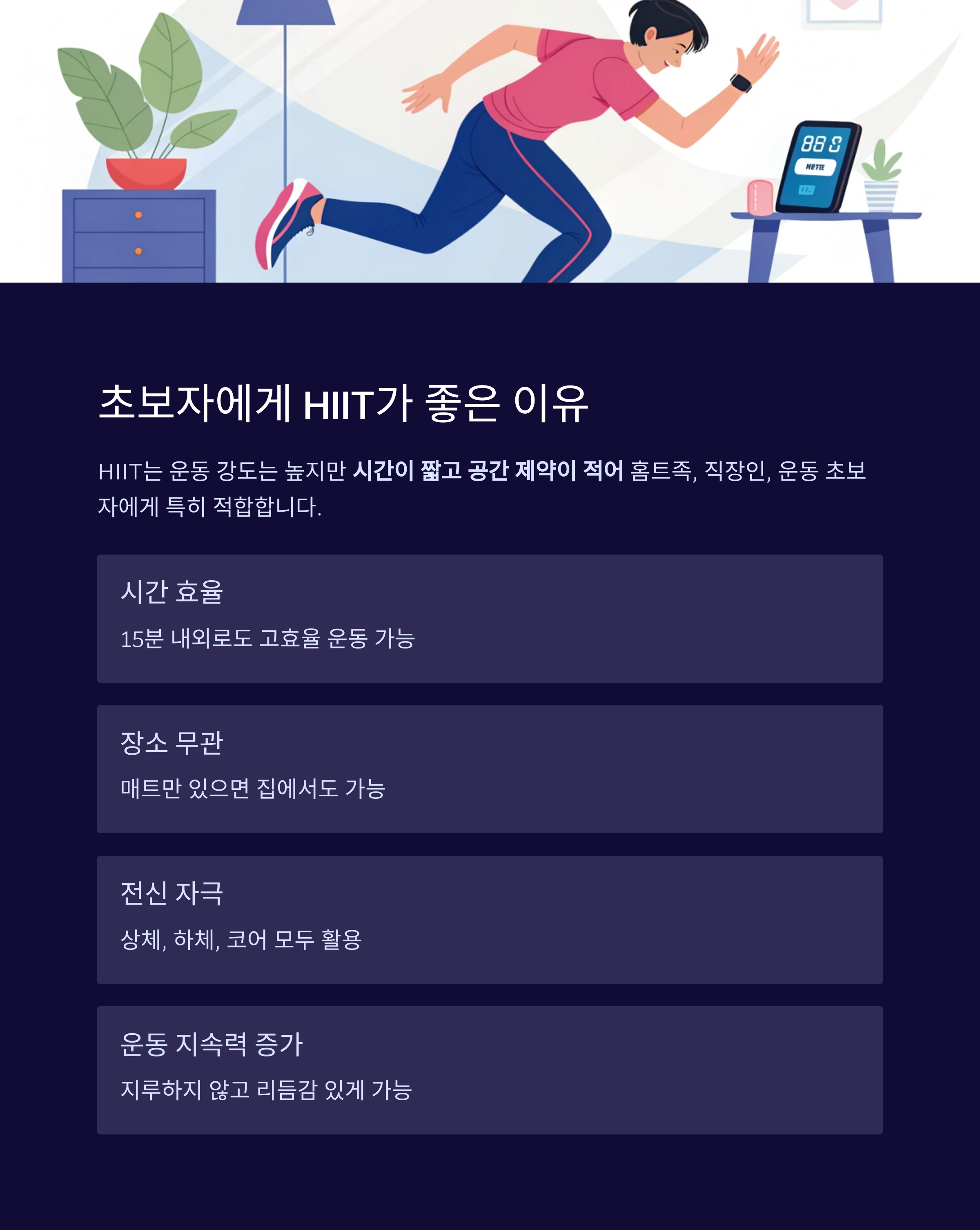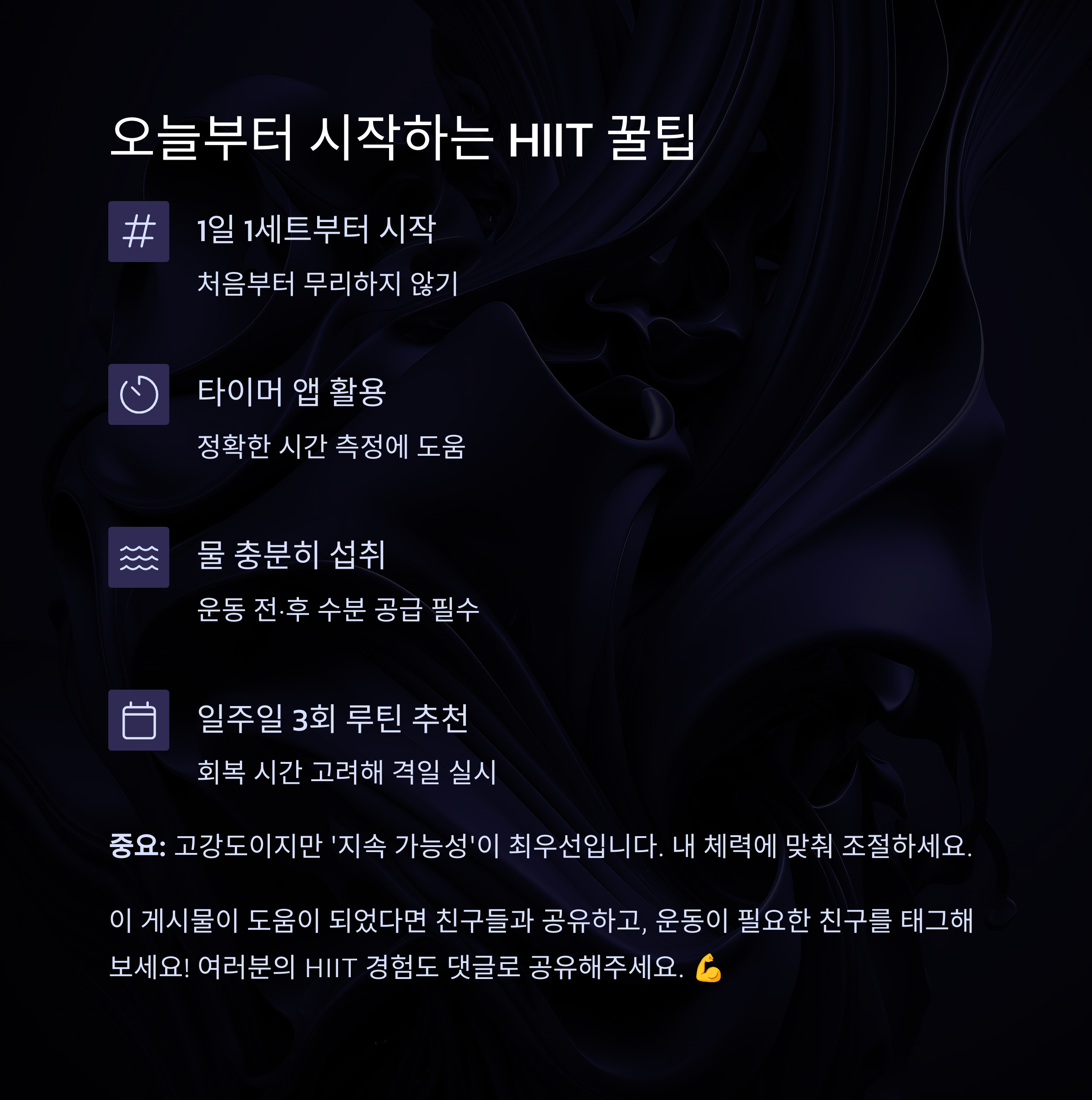 #HIIT운동 #고강도인터벌 #단시간운동 #지방연소운동 #홈트루틴 #운동초보가이드