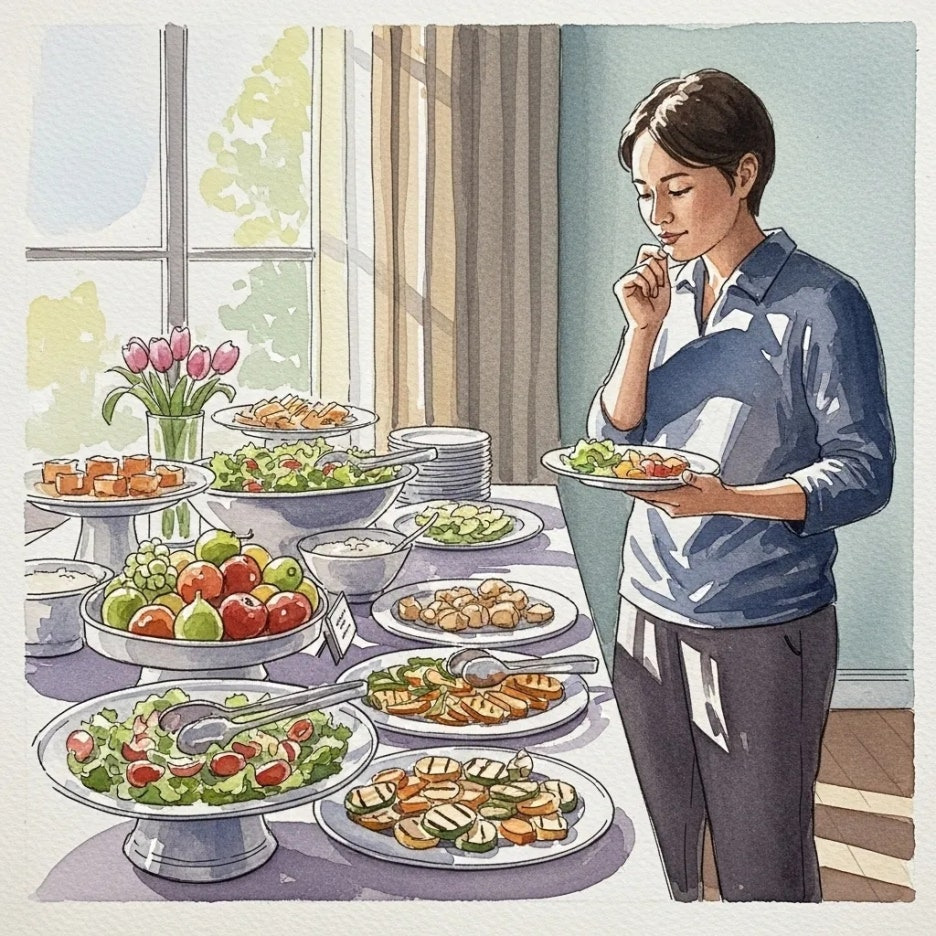 셋째, 좋아하는 메뉴에 집중하되, 평소에 잘 먹지 않던 새로운 음식에도 도전해 보는 건 어떨까요?