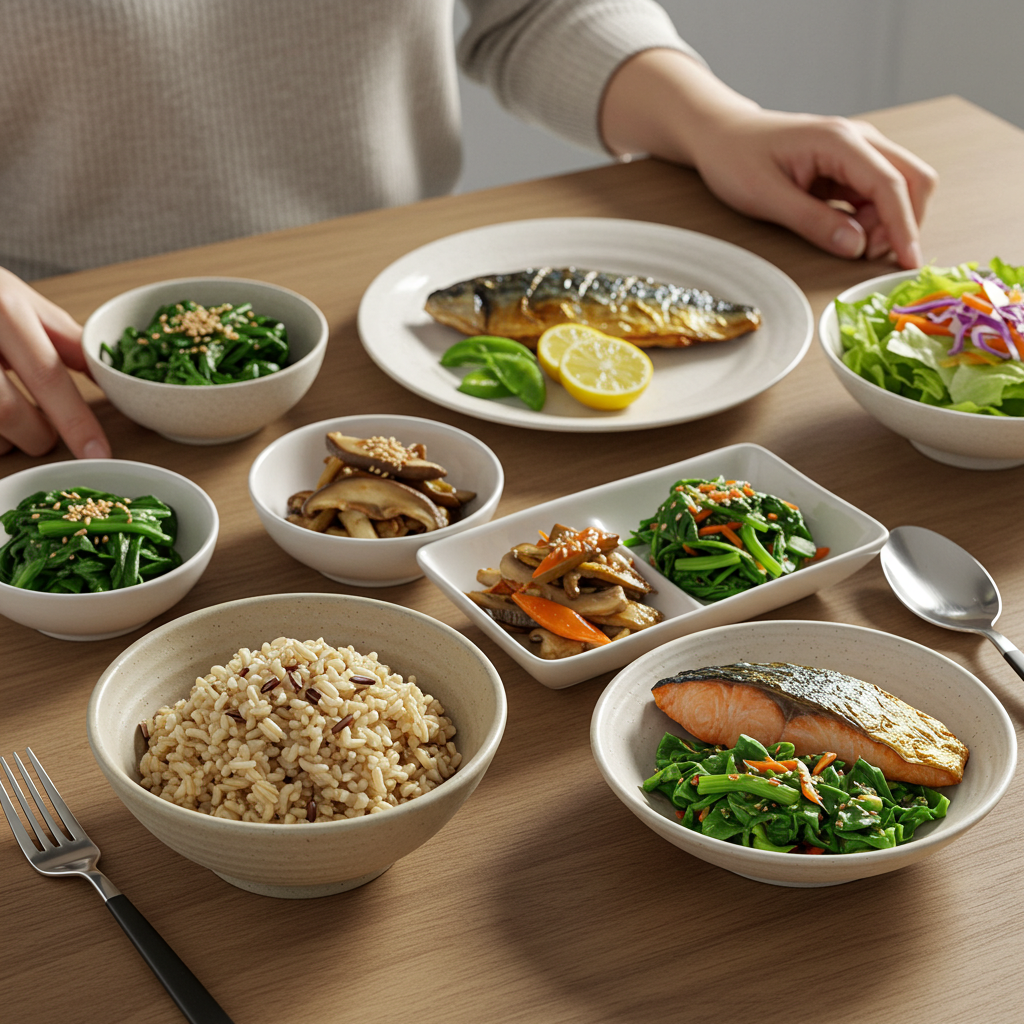 - ① 싱겁게 먹기: 나트륨은 혈압을 높이는 주범이에요. 평소보다 소금, 간장, 된장 같은 양념 사용량을 줄이고, 찌개보다는 맑은 국이나 찜 요리를 선택하는 게 좋아요.