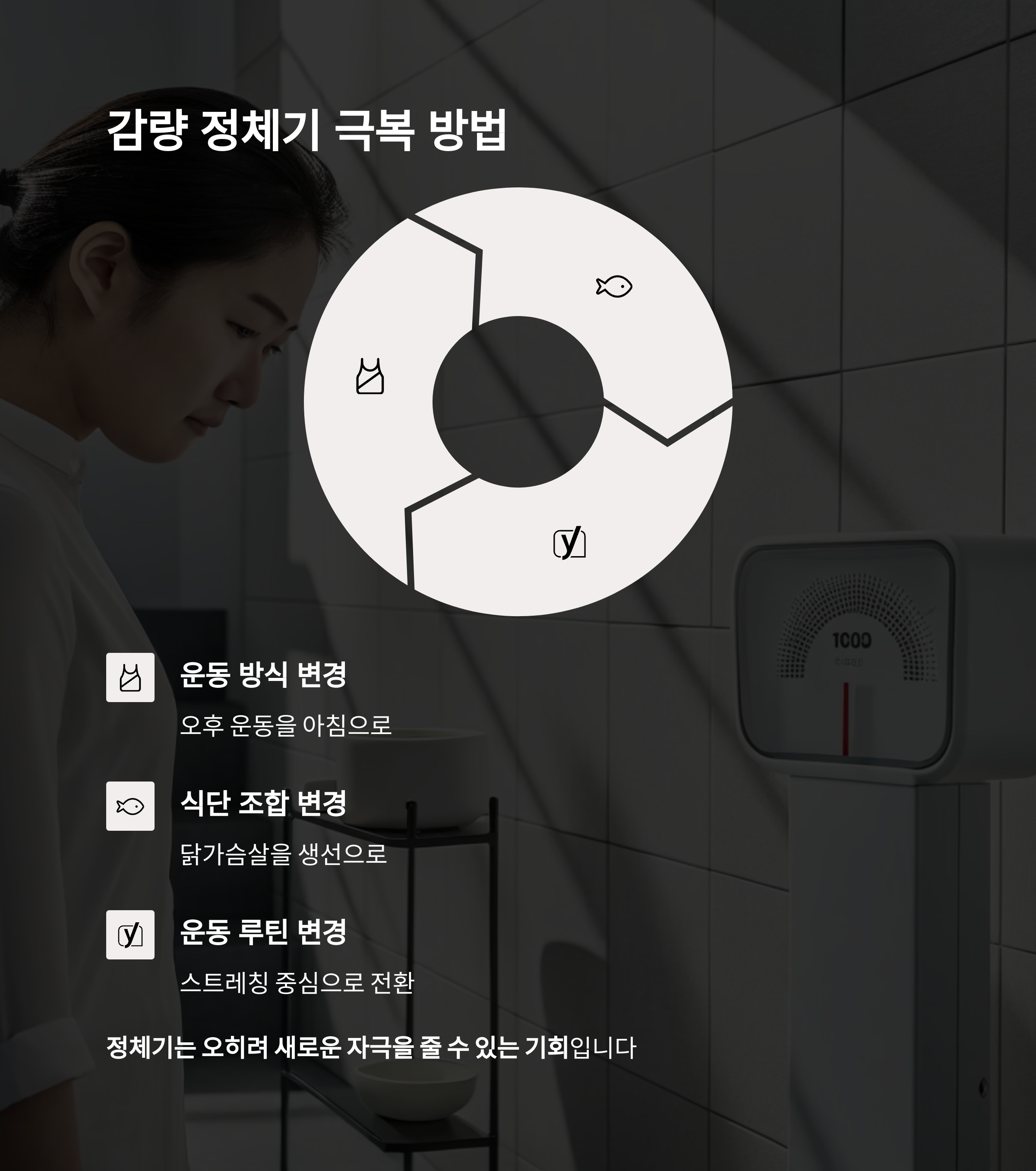 이때는 운동 방식, 식단 조합, 시간대를 바꿔보는 것이 효과적입니다
