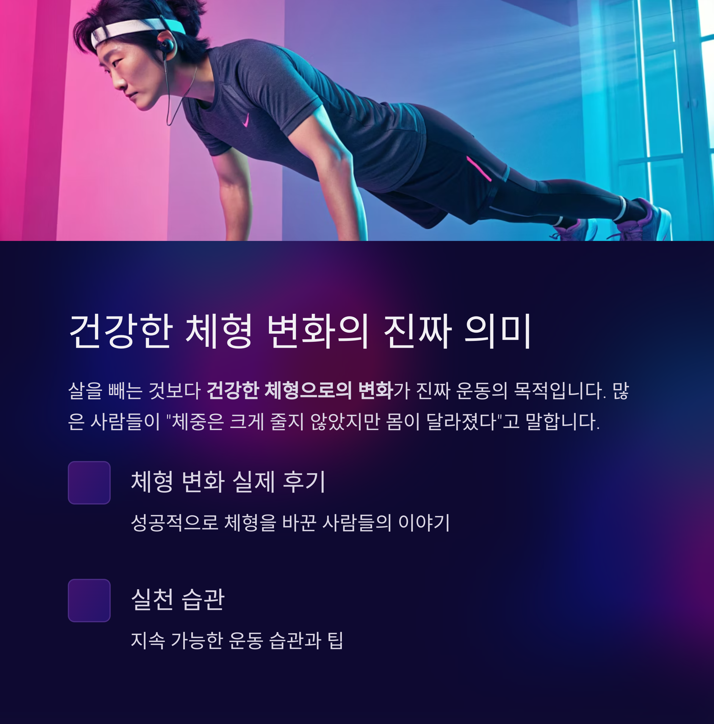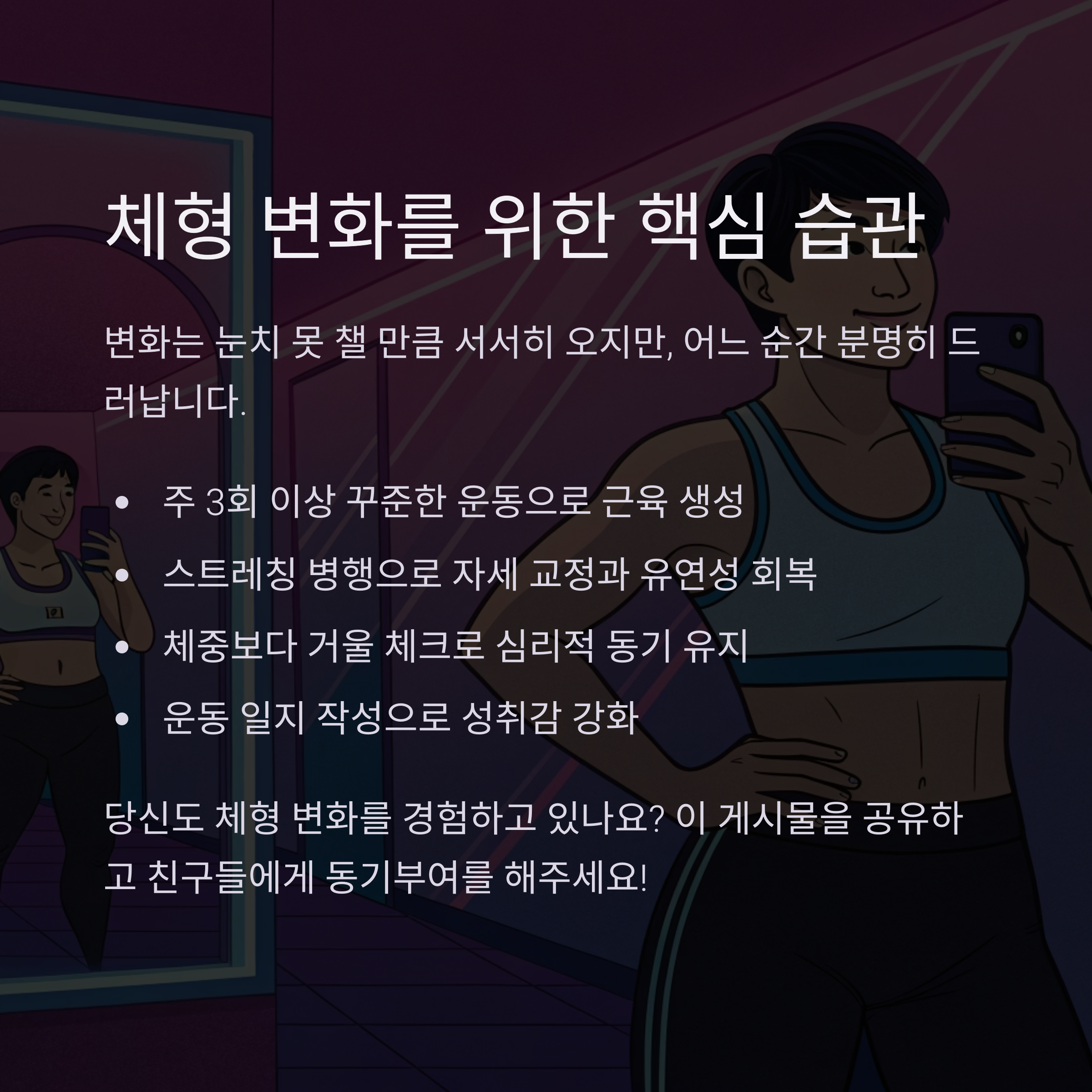 | 체중보다 거울 체크 | 외형 변화 우선 | 심리적 동기 유지 |