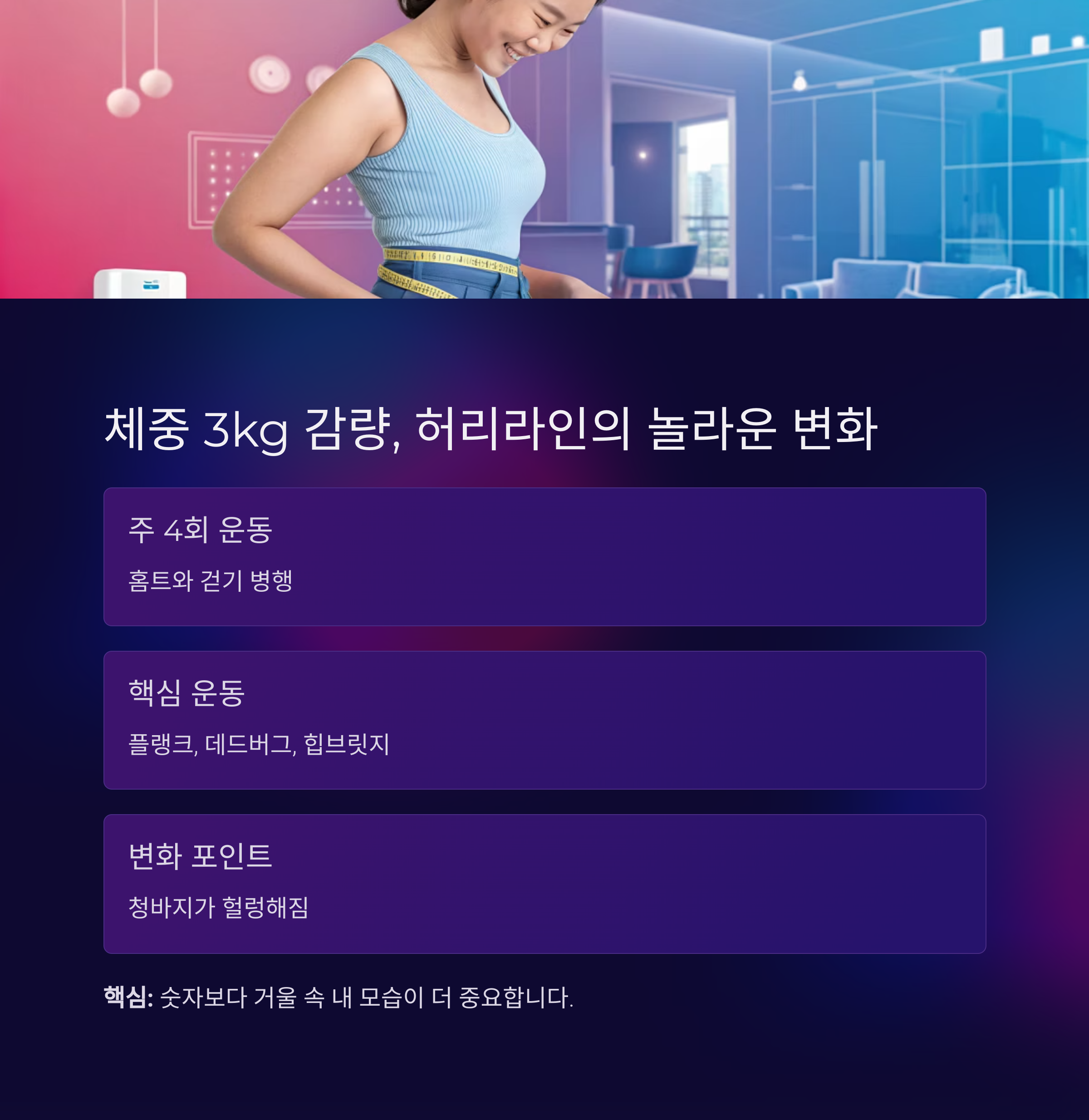 1. 체중보다 체형! 3kg 감량으로 허리라인 뚜렷해진 사례