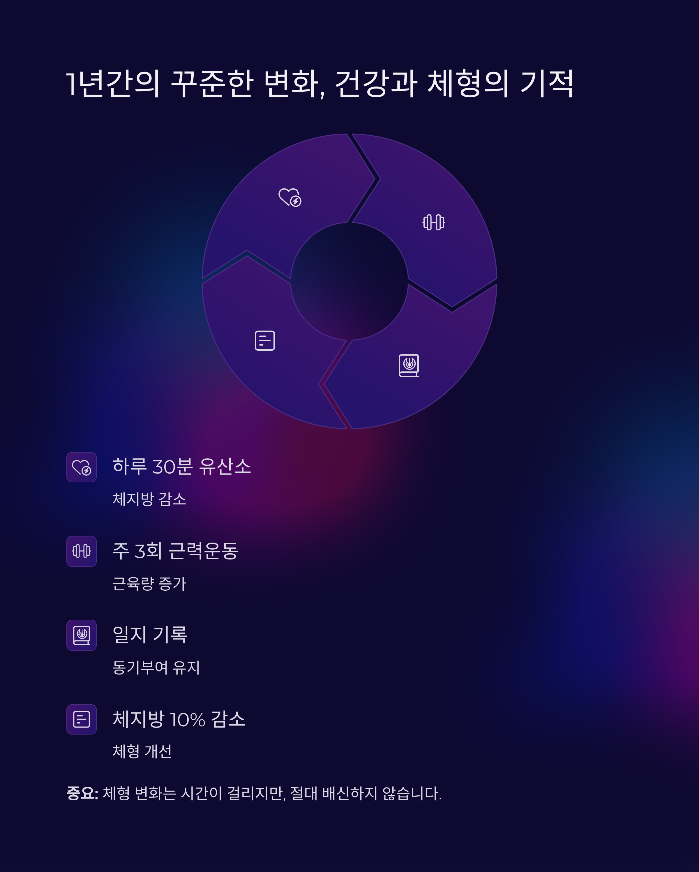 하루 30분 유산소 + 주 3회 근력운동 + 일지 기록이라는 단순한 원칙을