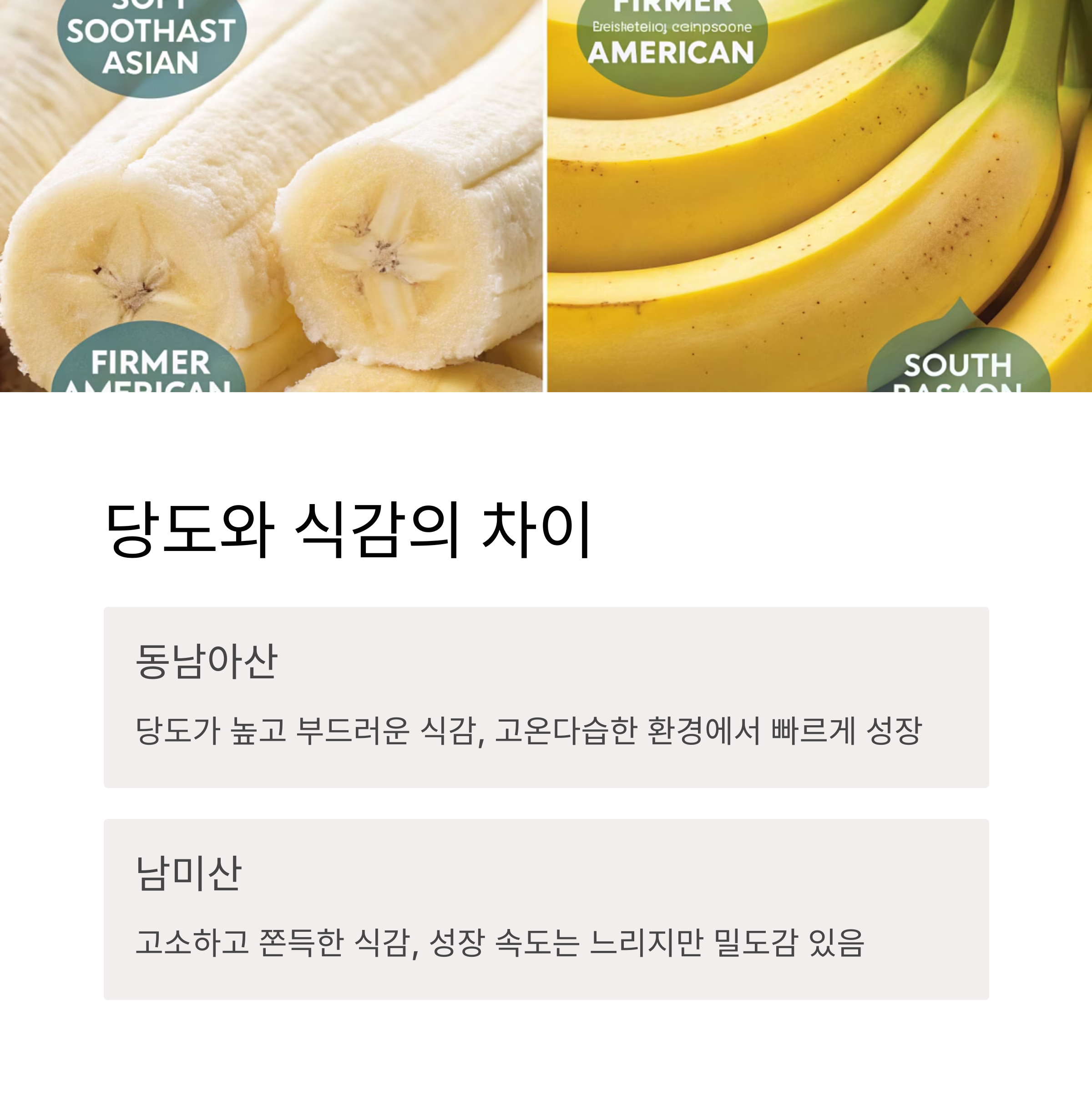 반면 남미산 바나나는 기후와 해발 고도의 차이로 인해
