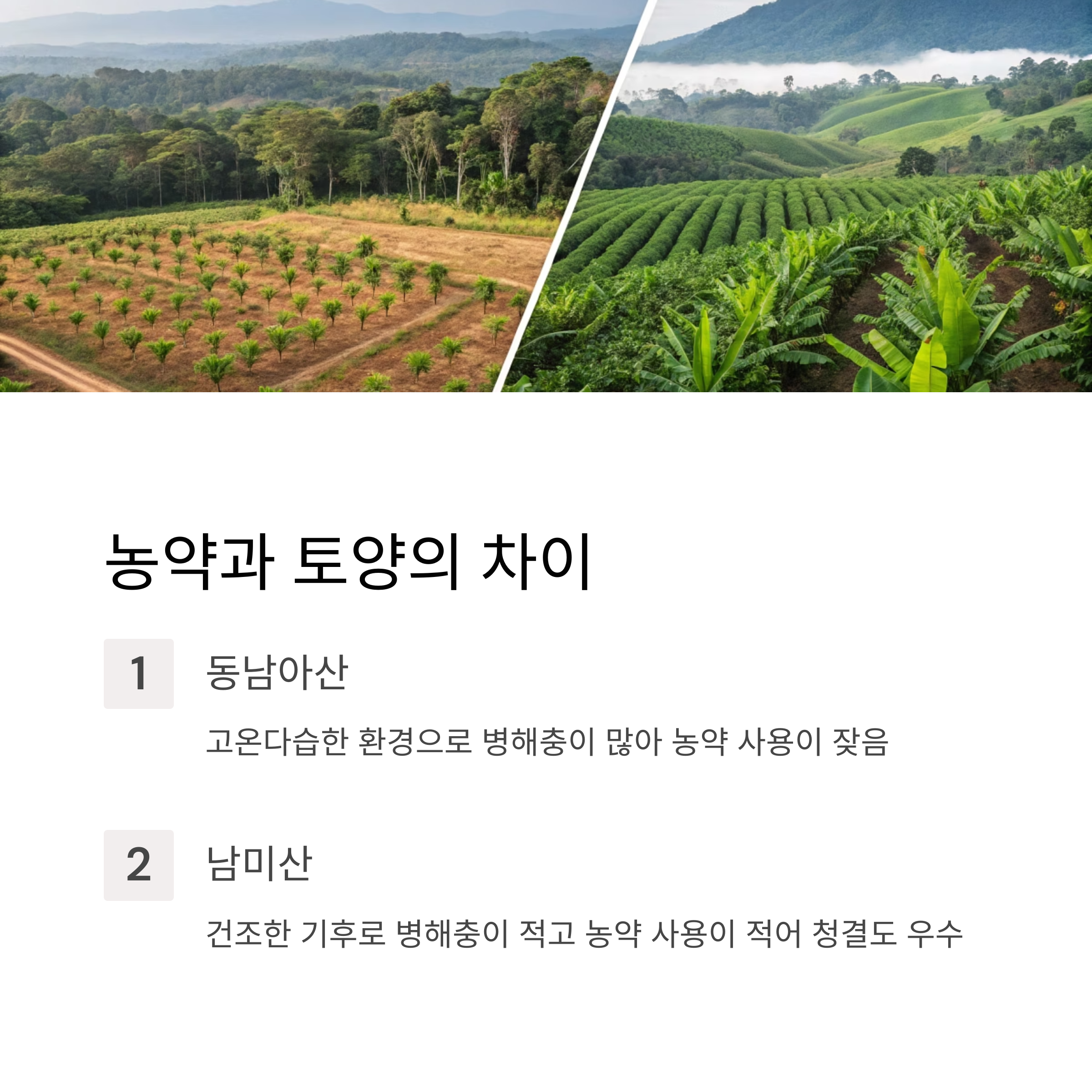 핵심: 동남아는 달콤, 남미는 밀도감 있는 식감
