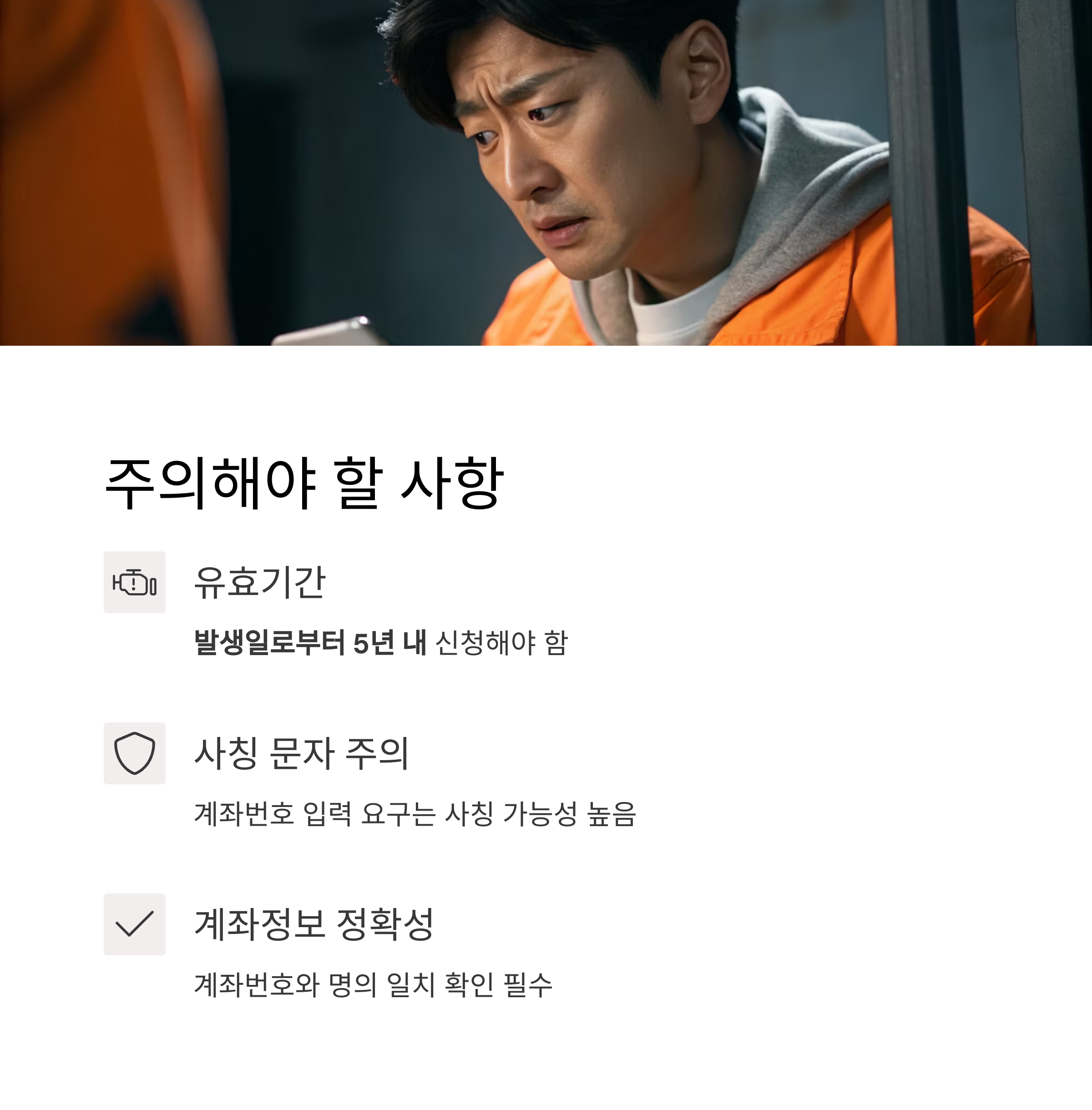 | 유의사항 | 계좌번호 오류, 사칭 문자 주의 |