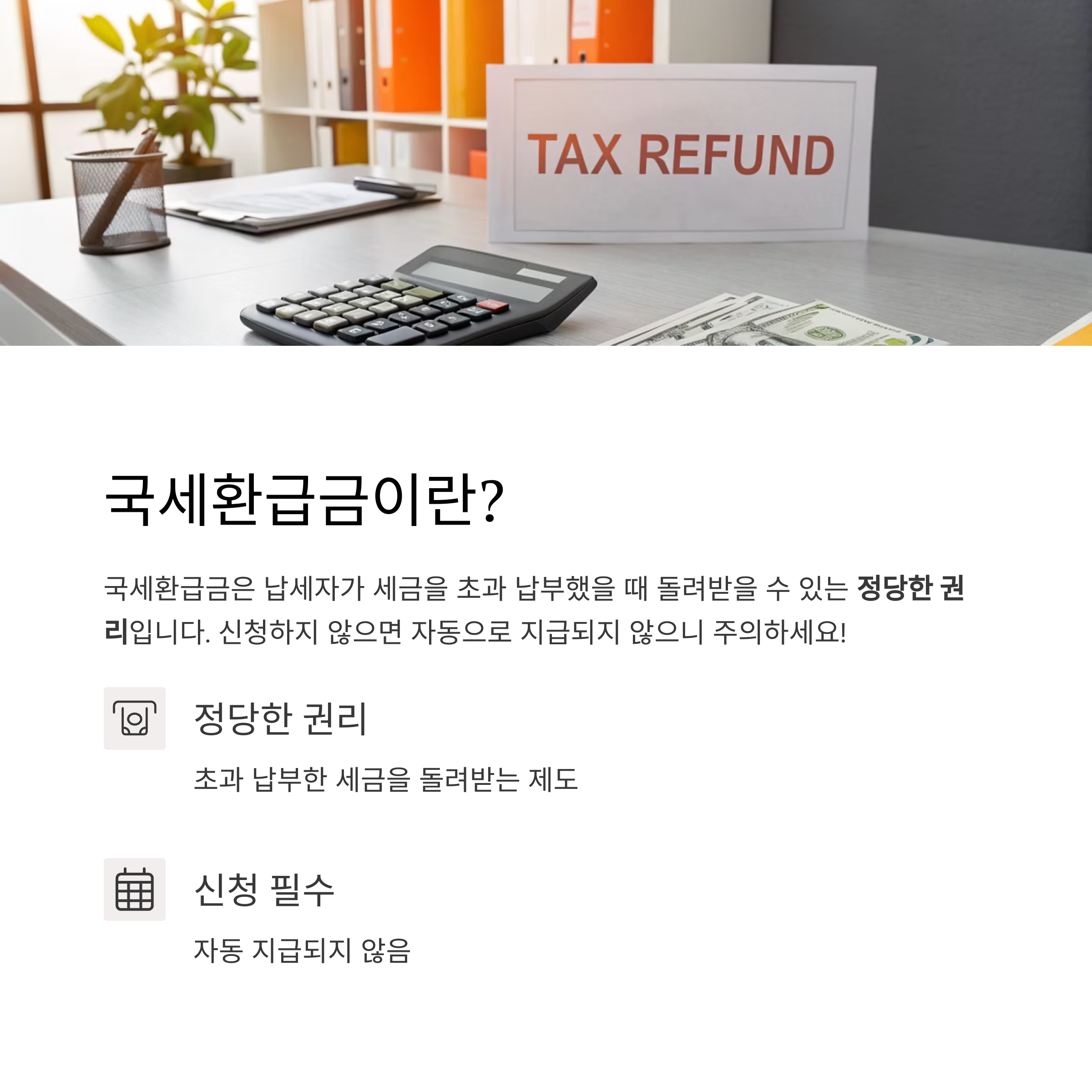 중요: 국세환급금은 신청하지 않으면 돌려받을 수 없습니다.