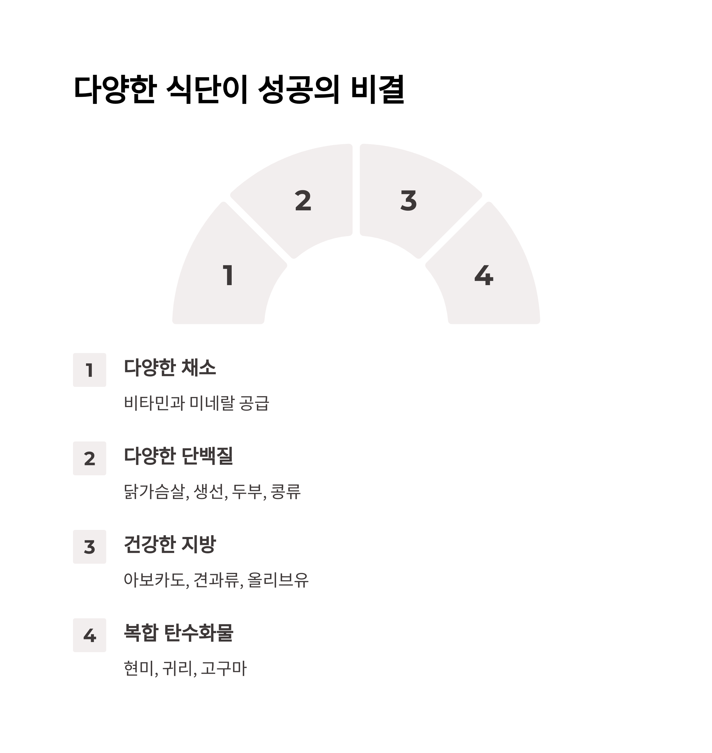 같은 열량이어도 다양한 채소, 곡물, 단백질 식품을 조합해