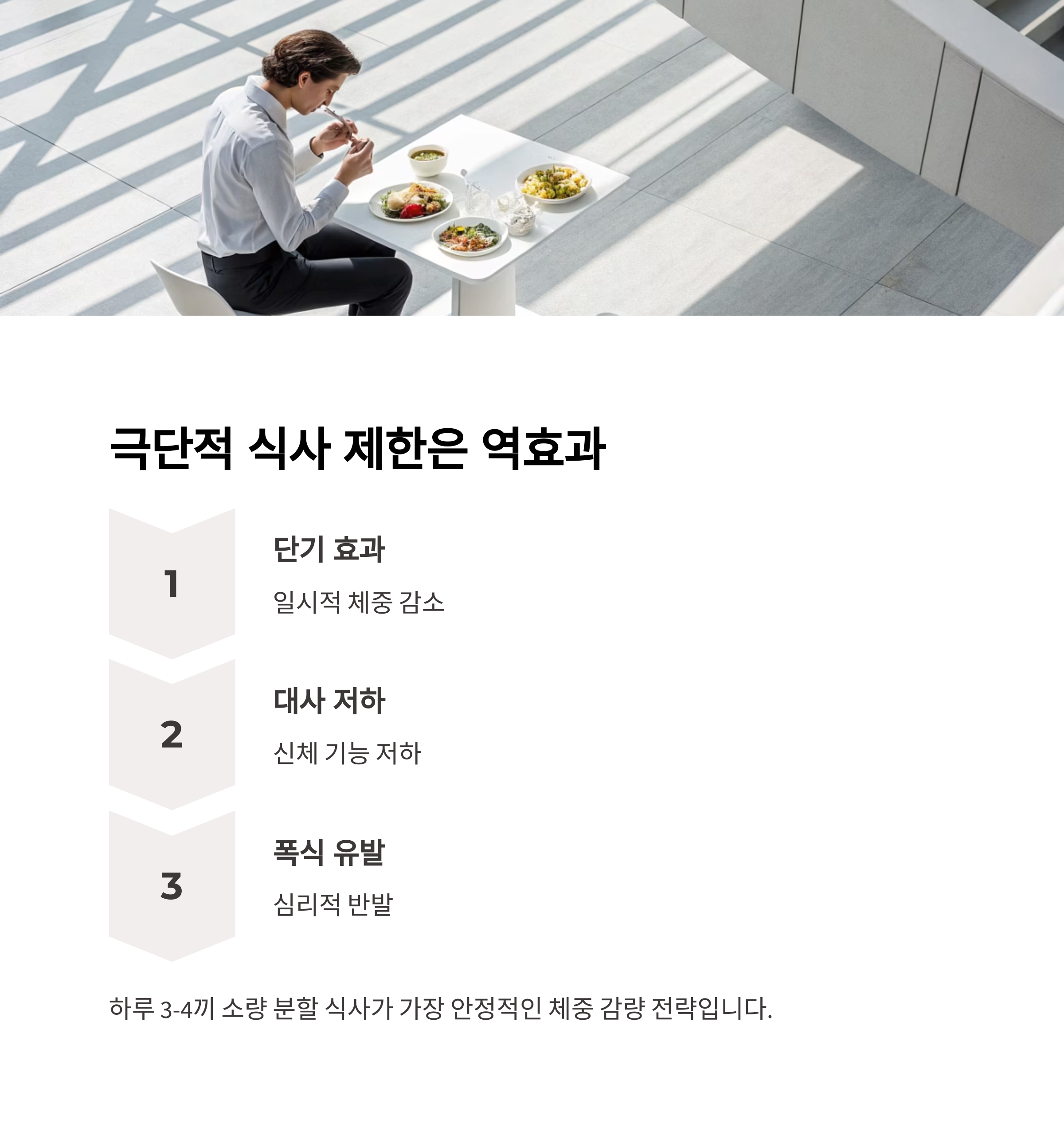 하루 3끼 or 4끼 소량 분할 식사가 가장 안정적인 체중 감량 전략입니다.