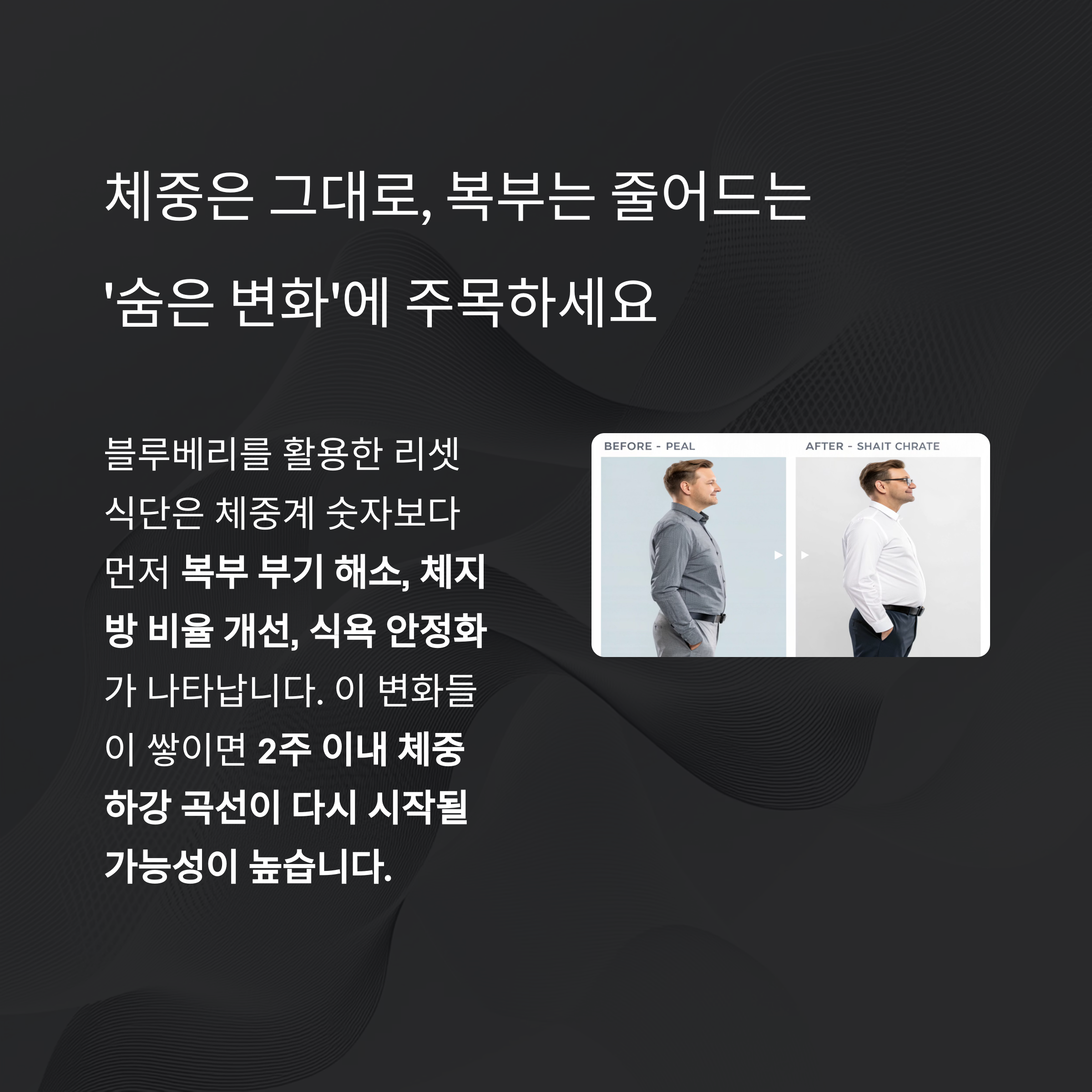 체중계 숫자보다 먼저 복부 부기 해소, 체지방 비율 개선, 식욕 안정화가 나타납니다.