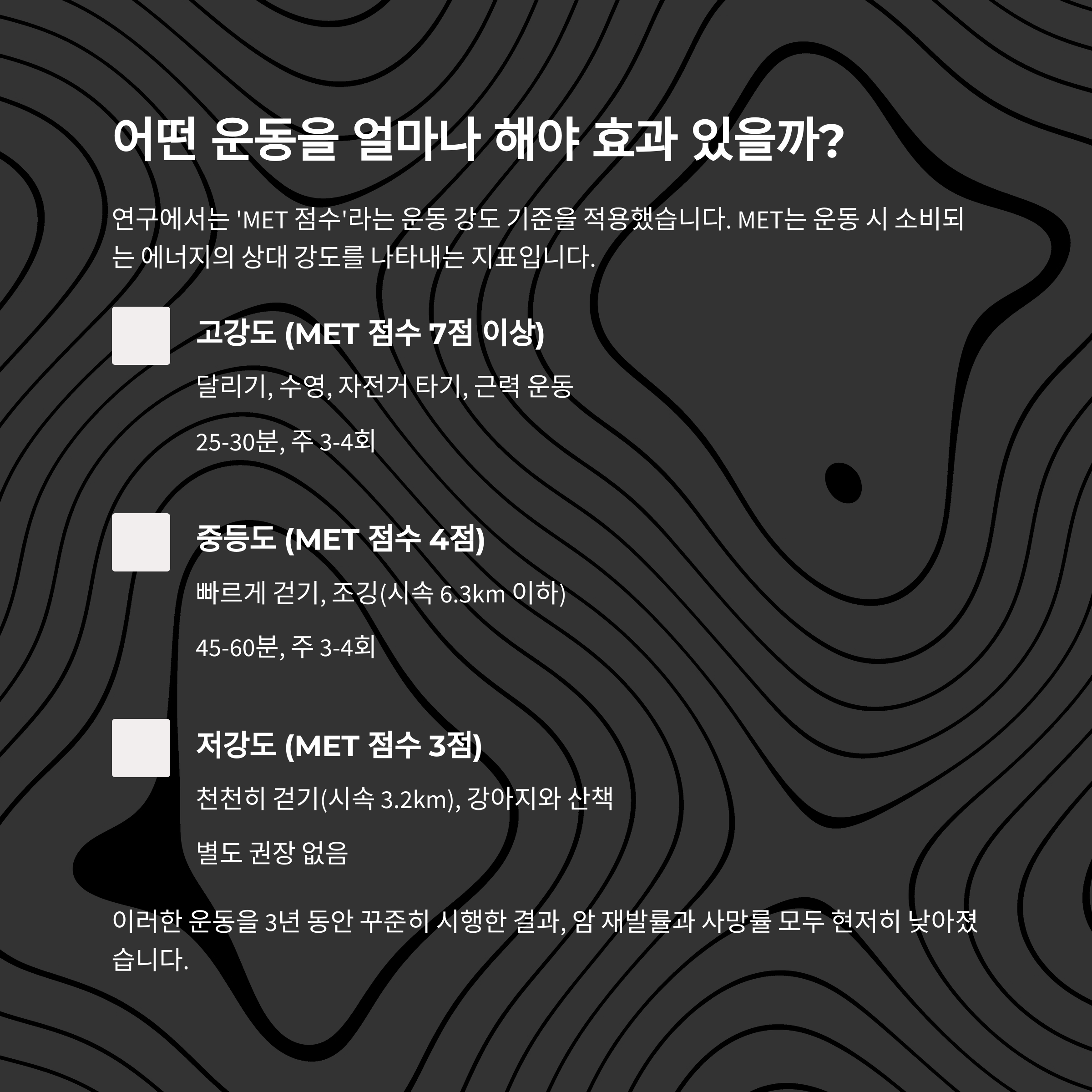 연구에서는 'MET 점수'라는 운동 강도 기준을 적용했습니다.