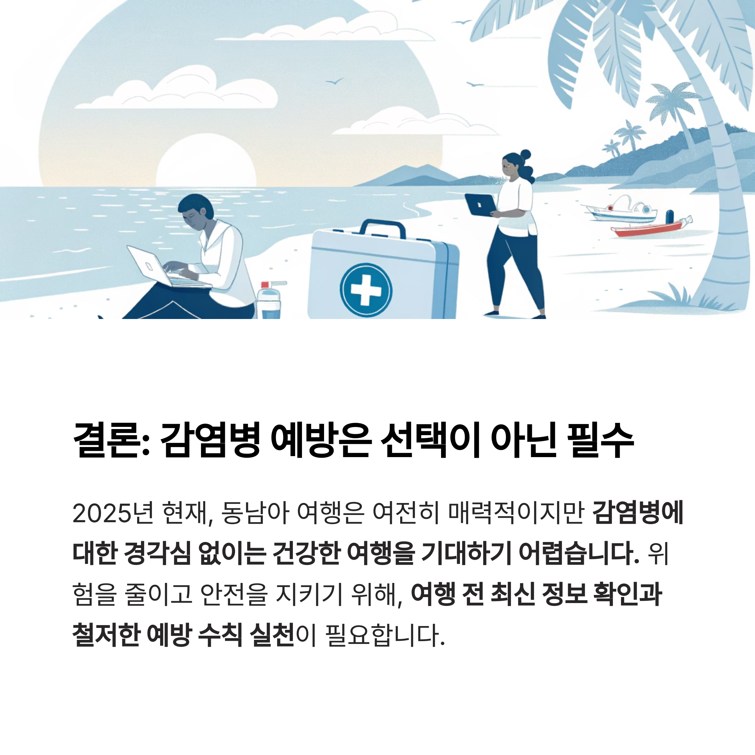 감염병에 대한 경각심 없이는 건강한 여행을 기대하기 어렵습니다.