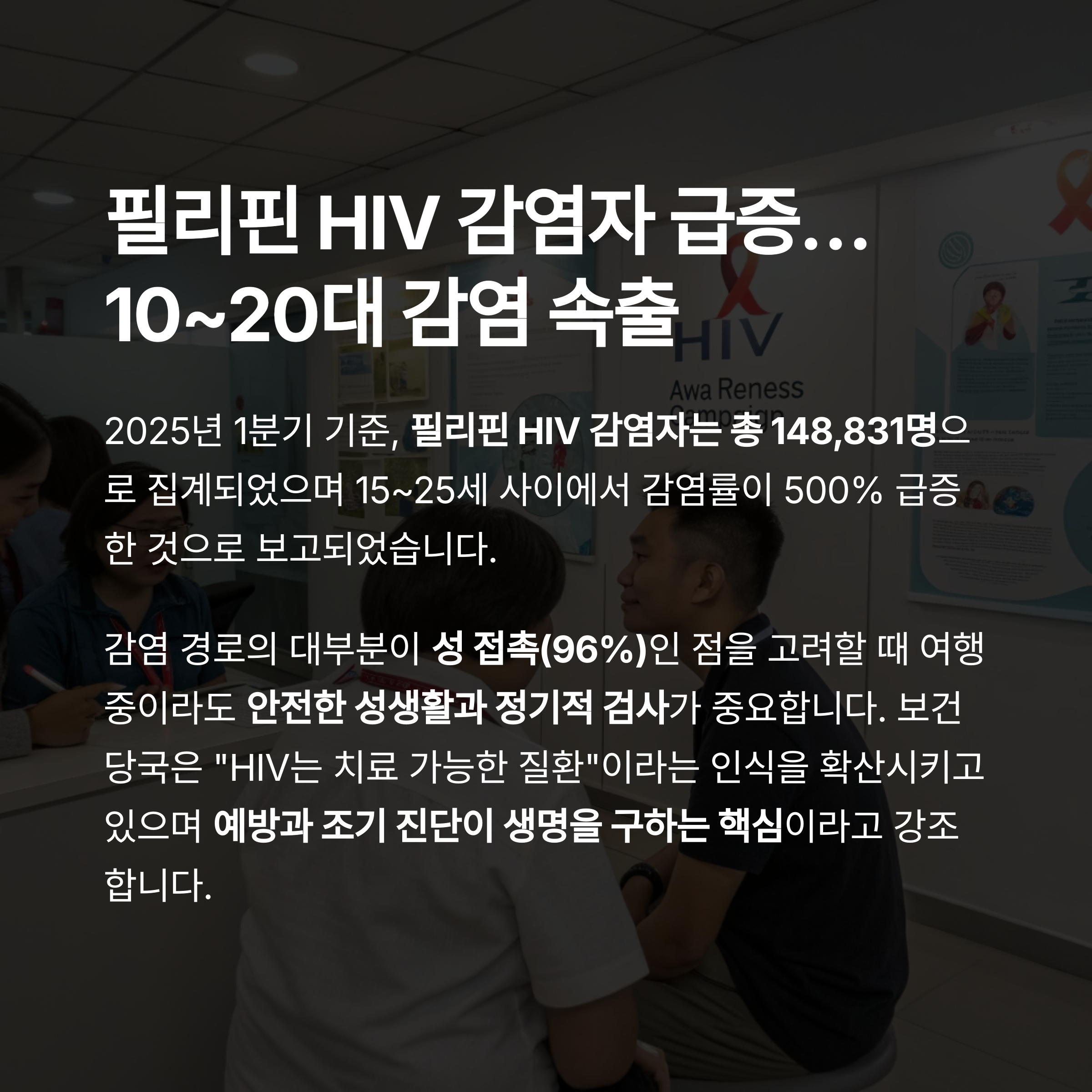 2025년 1분기 기준, 필리핀 HIV 감염자는 총 148,831명으로 집계되었으며