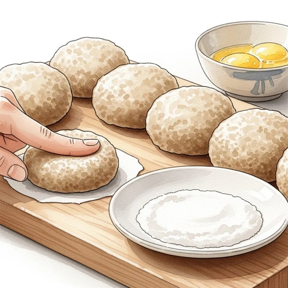 이때 전분가루(옥수수 전분이나 부침가루)를 살짝 넣어주면 반죽이 훨씬 찰지고 단단해진답니다.