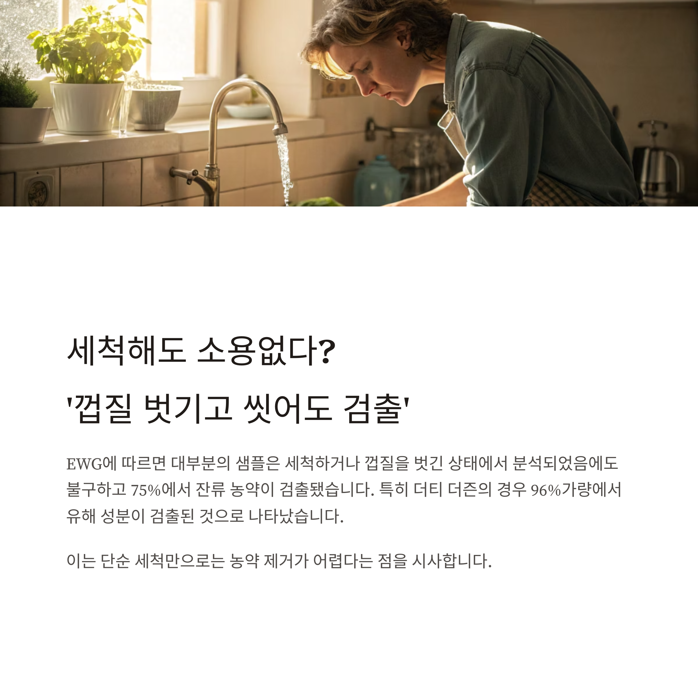 이는 단순 세척만으로는 농약 제거가 어렵다는 점을 시사합니다.
