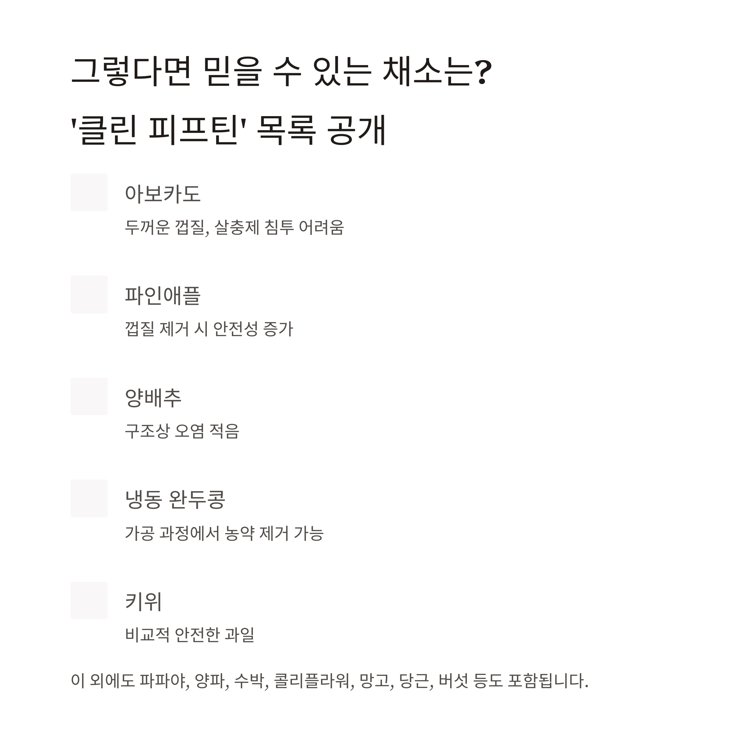 | 키위 | 비교적 안전한 과일 |