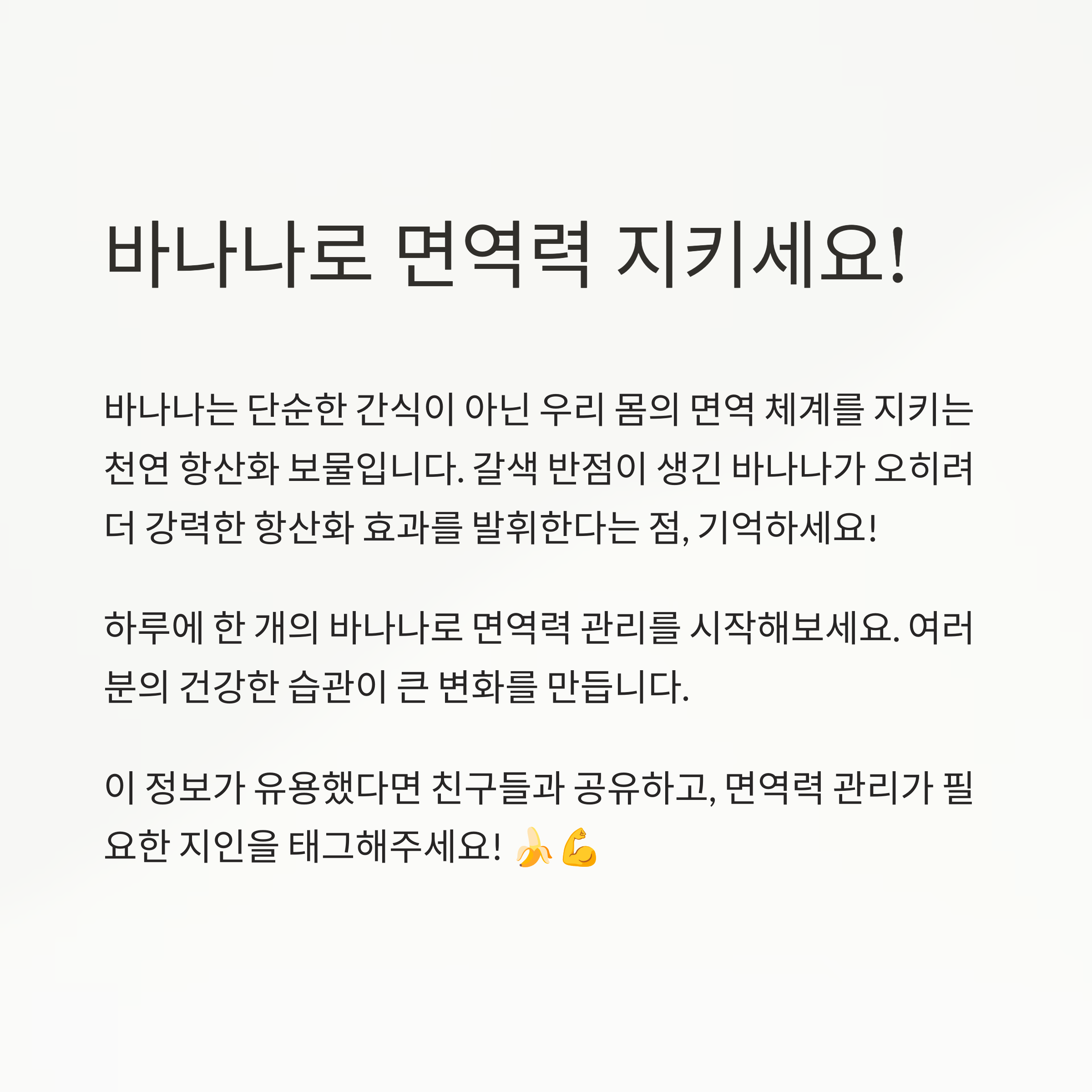 중요: 바나나는 단기적인 감기 예방뿐 아니라 장기적인 면역 밸런스 유지에도 긍정적입니다.