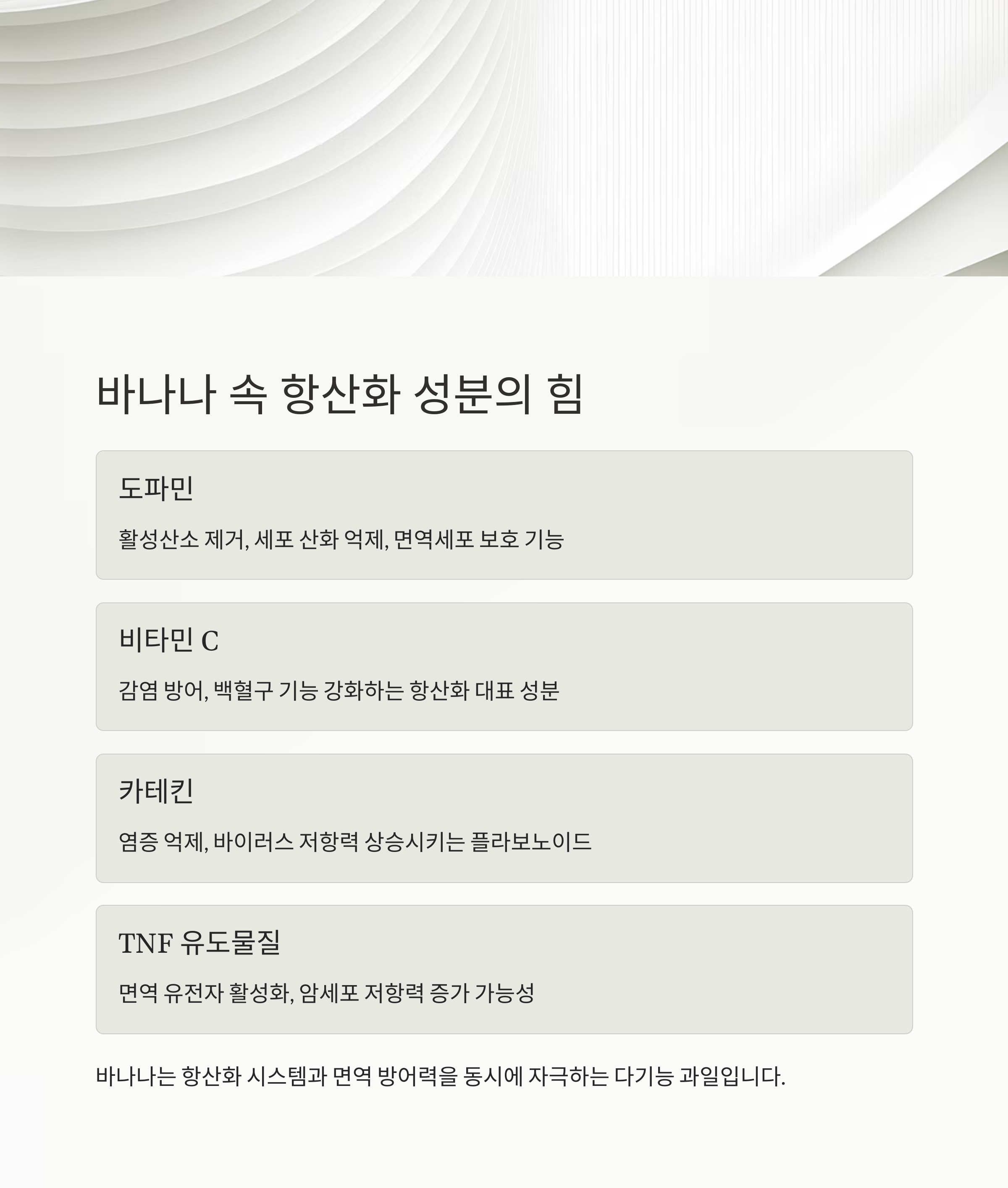 핵심: 바나나는 항산화 시스템과 면역 방어력을 동시에 자극하는 다기능 과일입니다.