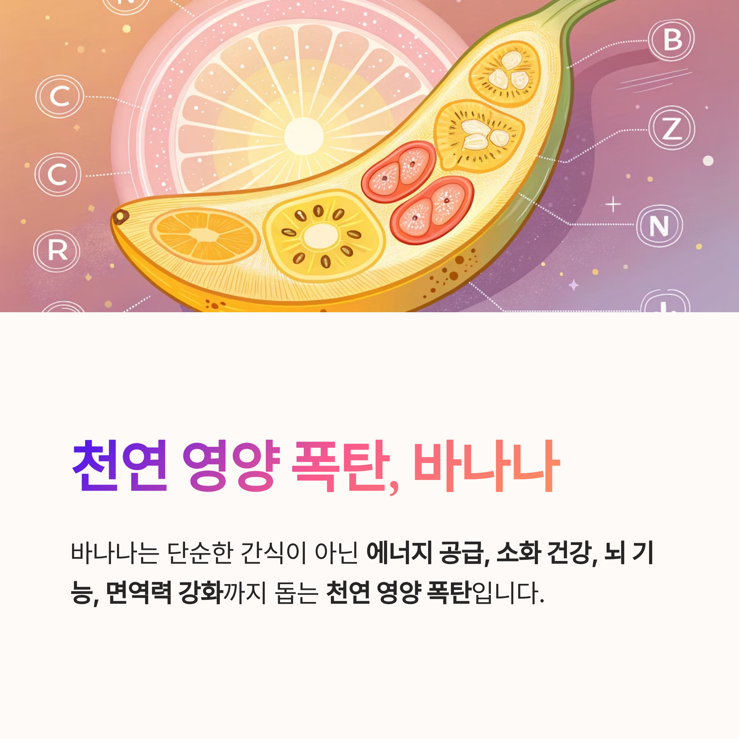 핵심: 바나나는 단순 당분이 아닌, 비타민·미네랄까지 균형 잡힌 천연 식품입니다.