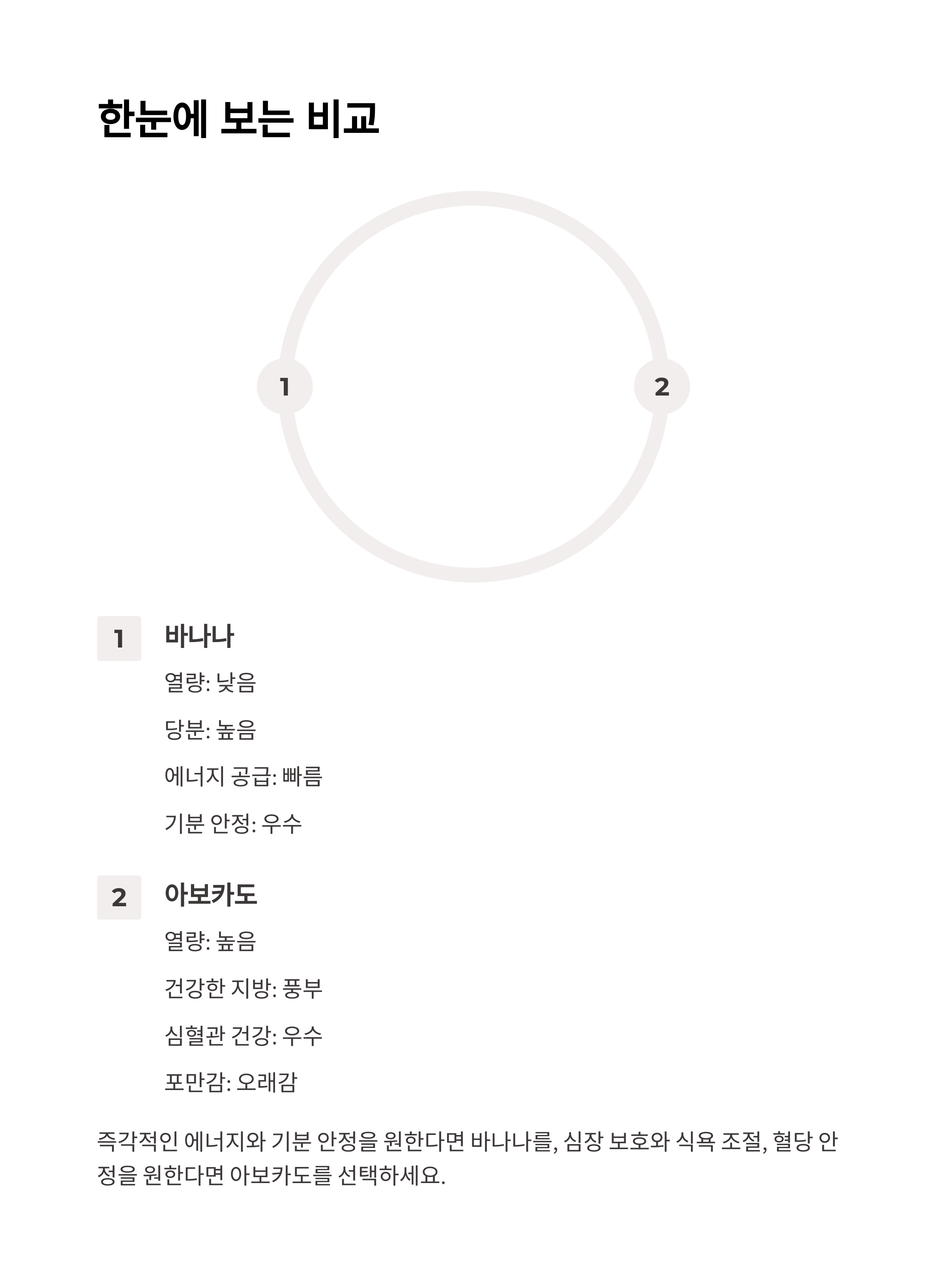 | 변비 개선 | 둘 다 가능 | 바나나=펙틴, 아보카도=식이섬유 |