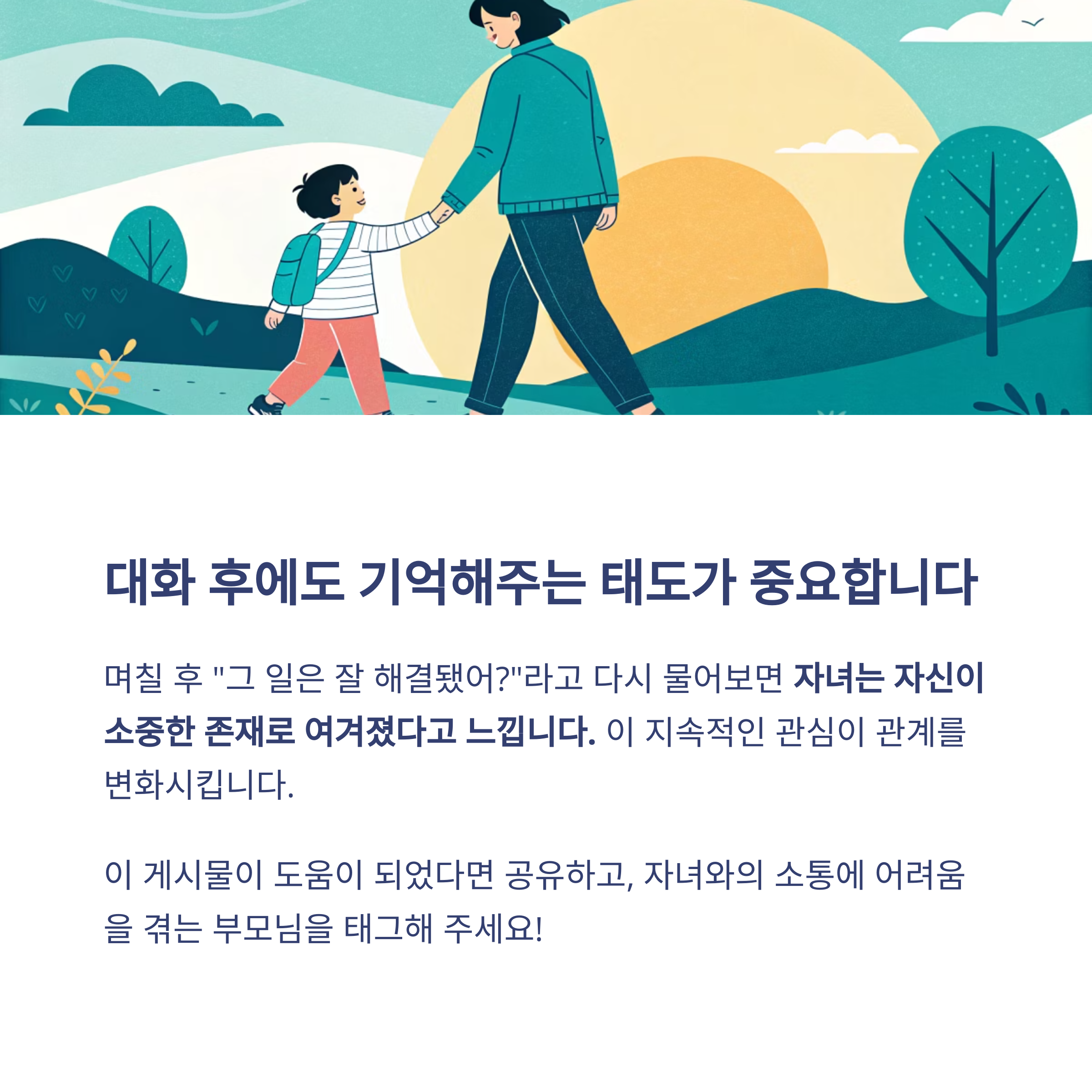 며칠 후 자녀에게 "그 일은 잘 해결됐어?"라고 다시 물어보면