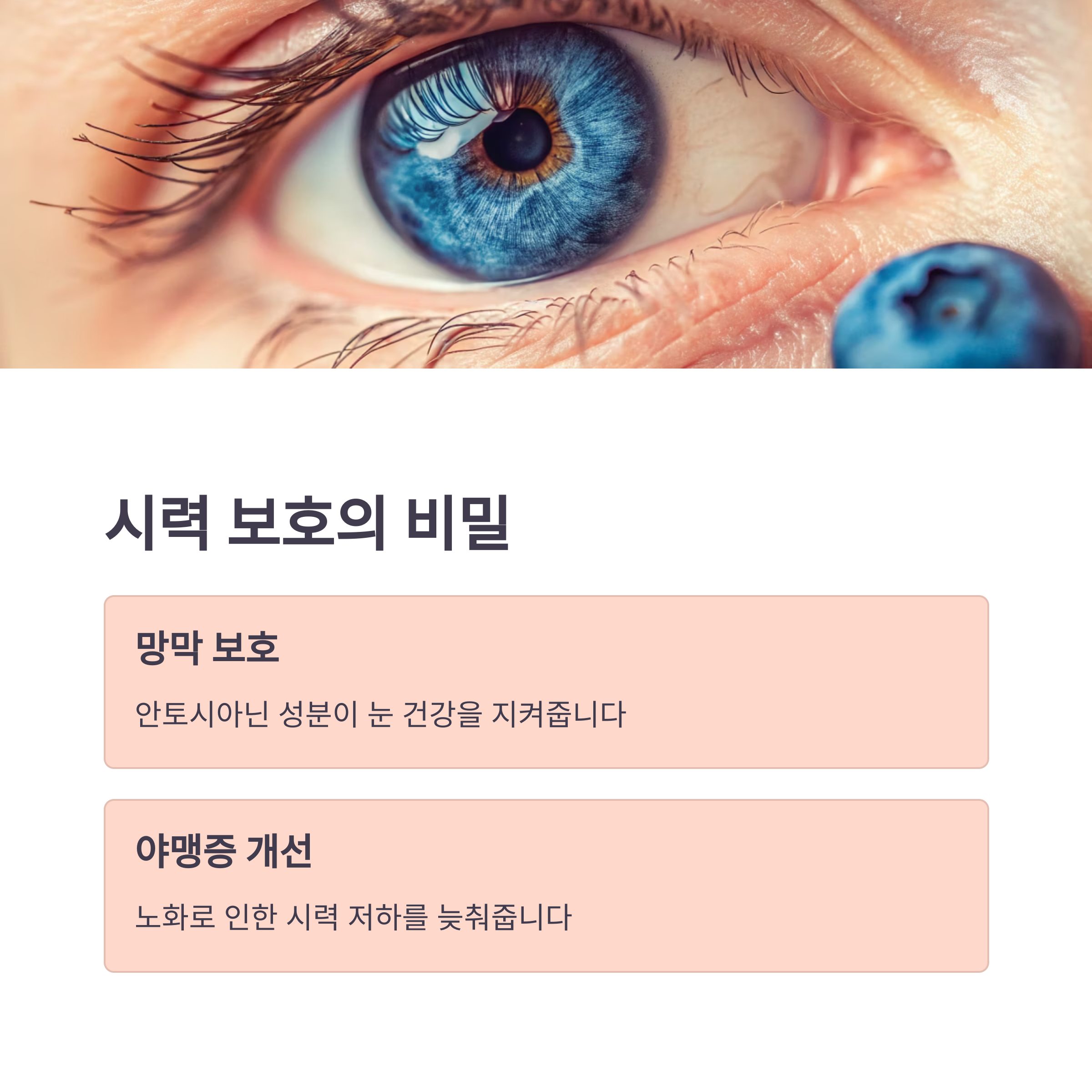 | 시력 보호 | 안토시아닌 | 망막 보호, 야맹증 개선 |