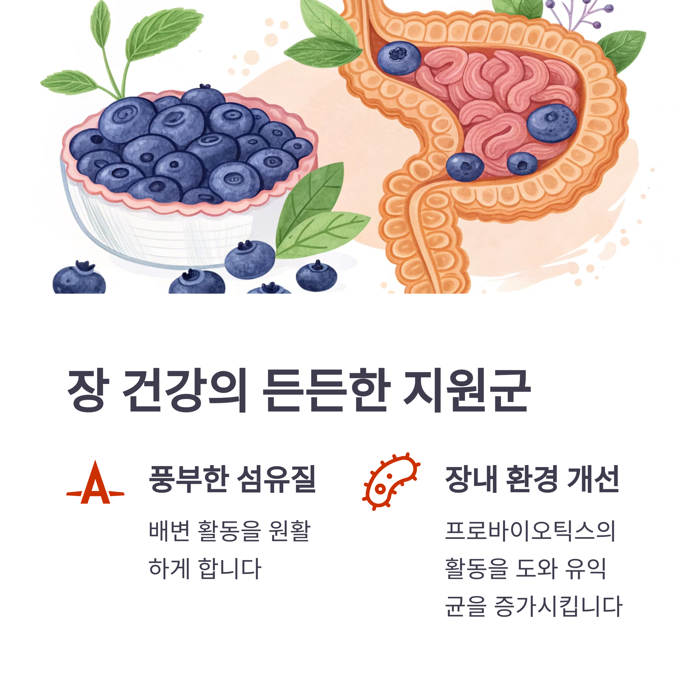 블루베리는 식이섬유와 수분 함량이 높아 변비 예방에 효과적이며,