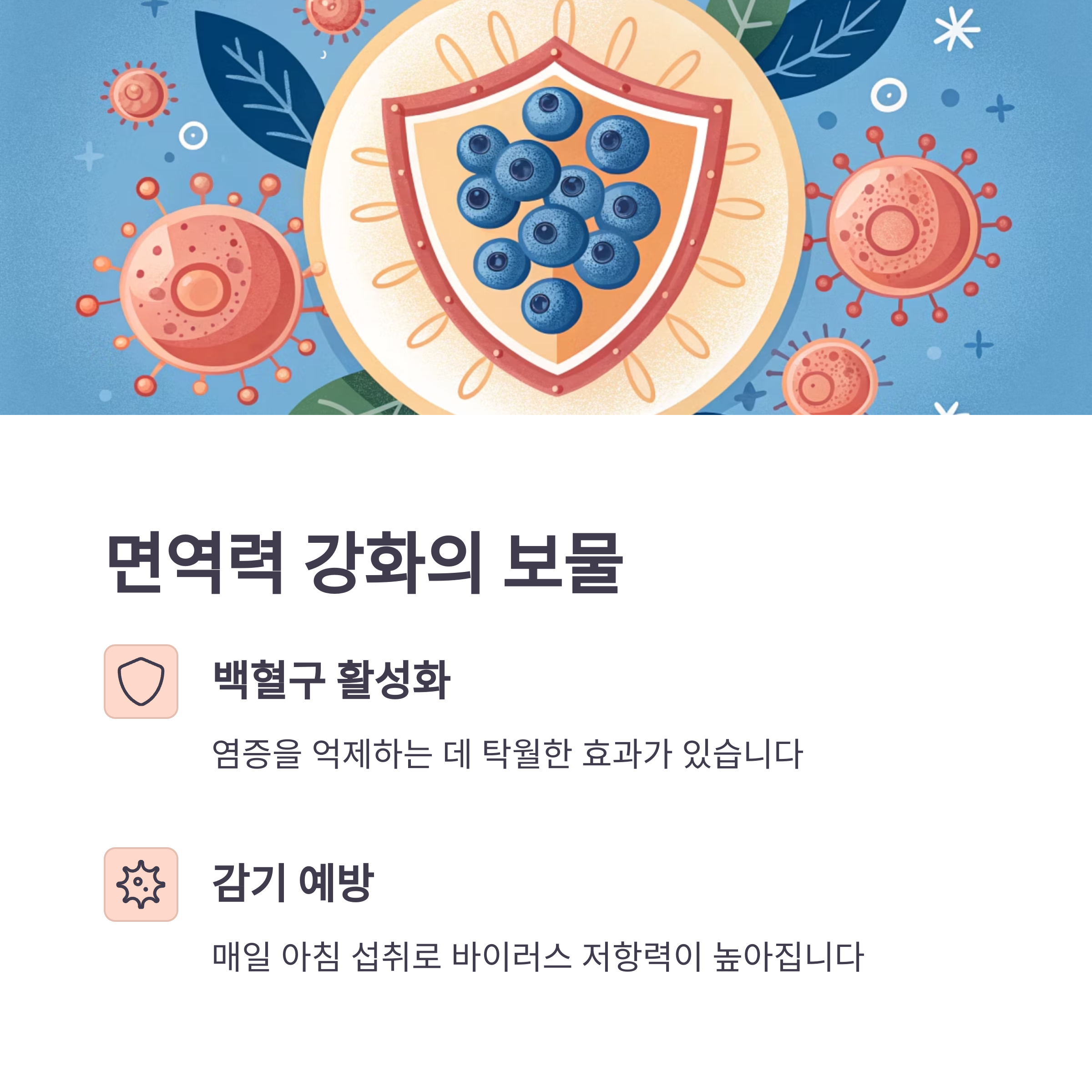 블루베리는 백혈구의 활성을 높이고 염증을 억제하는 데 탁월한 식품입니다.
