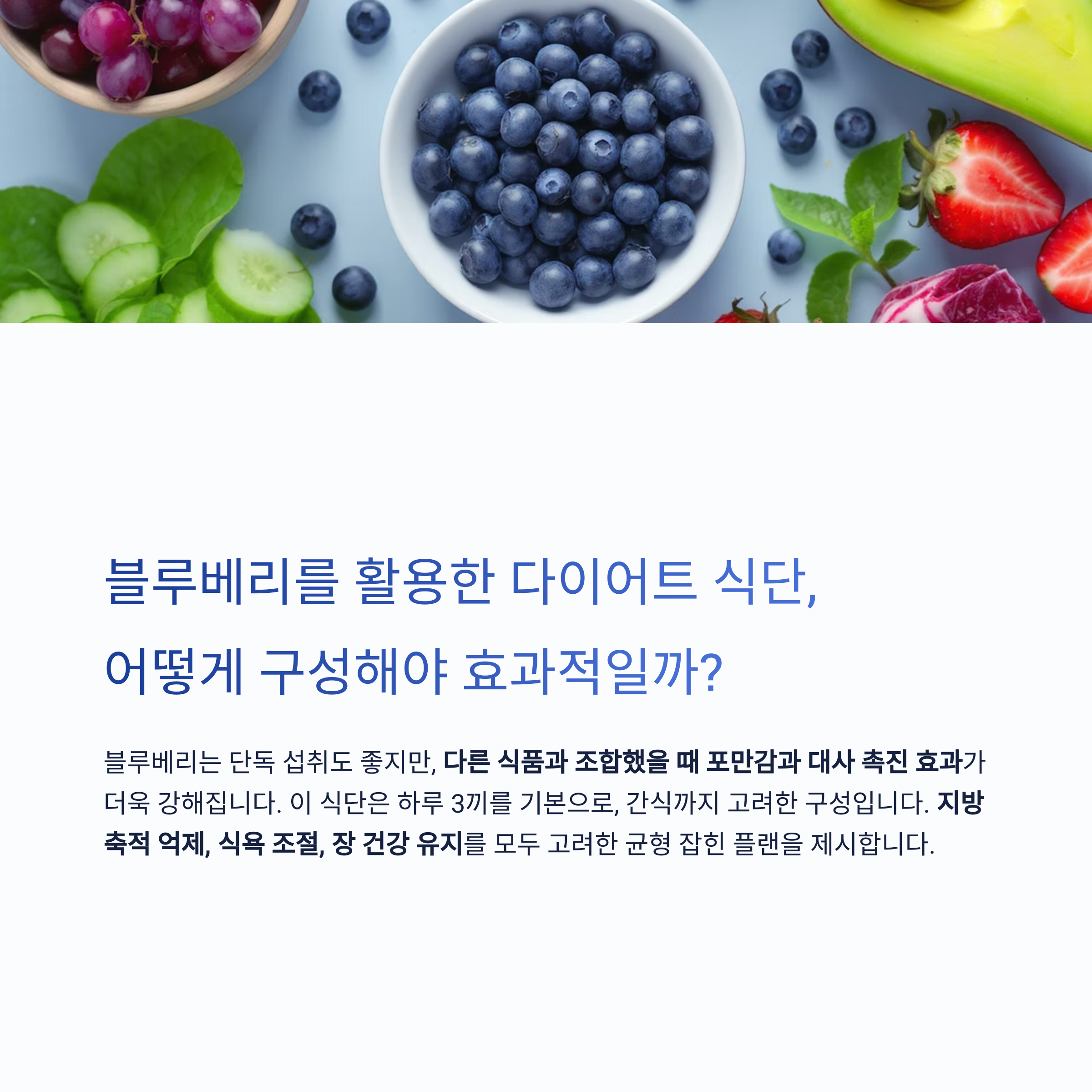 블루베리는 단독 섭취도 좋지만, 다른 식품과 조합했을 때 포만감과 대사 촉진 효과가 더욱 강해집니다.