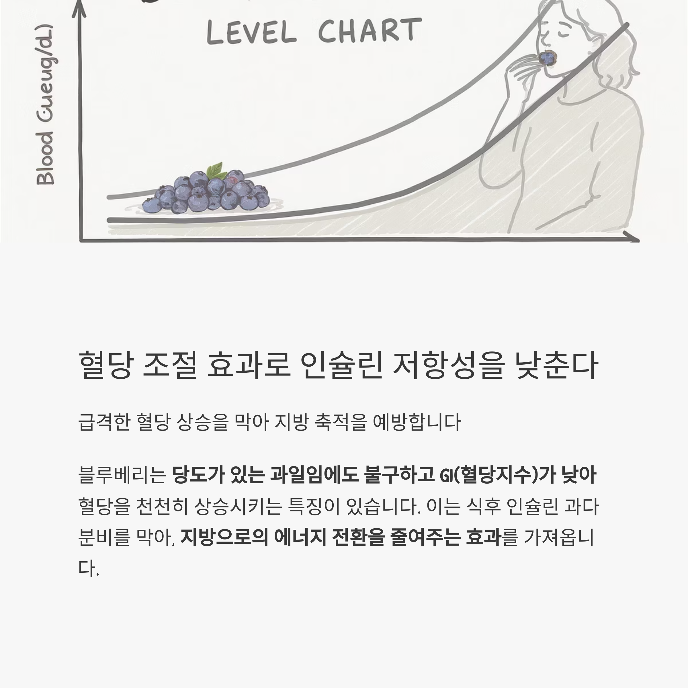 | 냉동 블루베리 1/2컵 | 오후 간식 | 혈당 안정화, 과식 예방 |