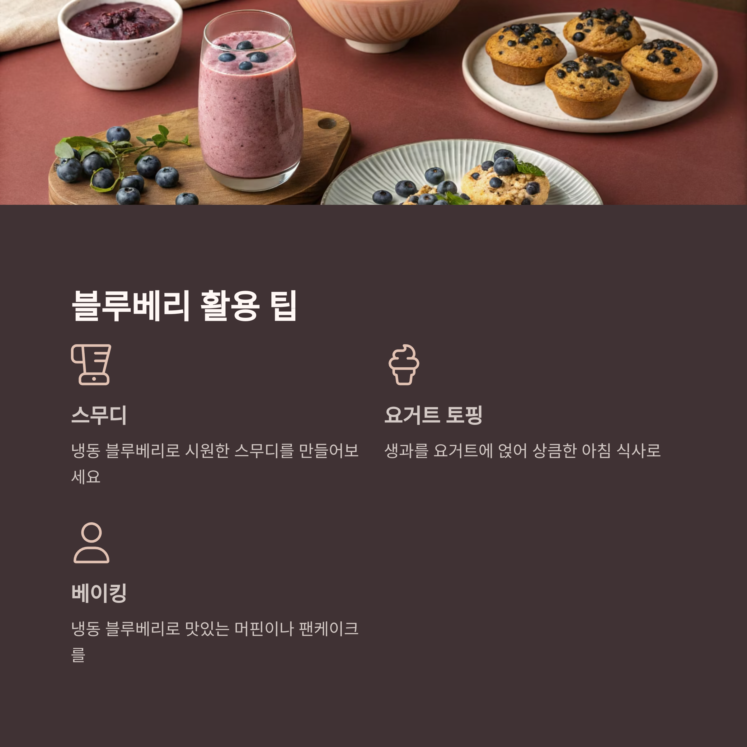 요거트, 스무디, 잼, 베이킹 재료로 활용하기 좋습니다.