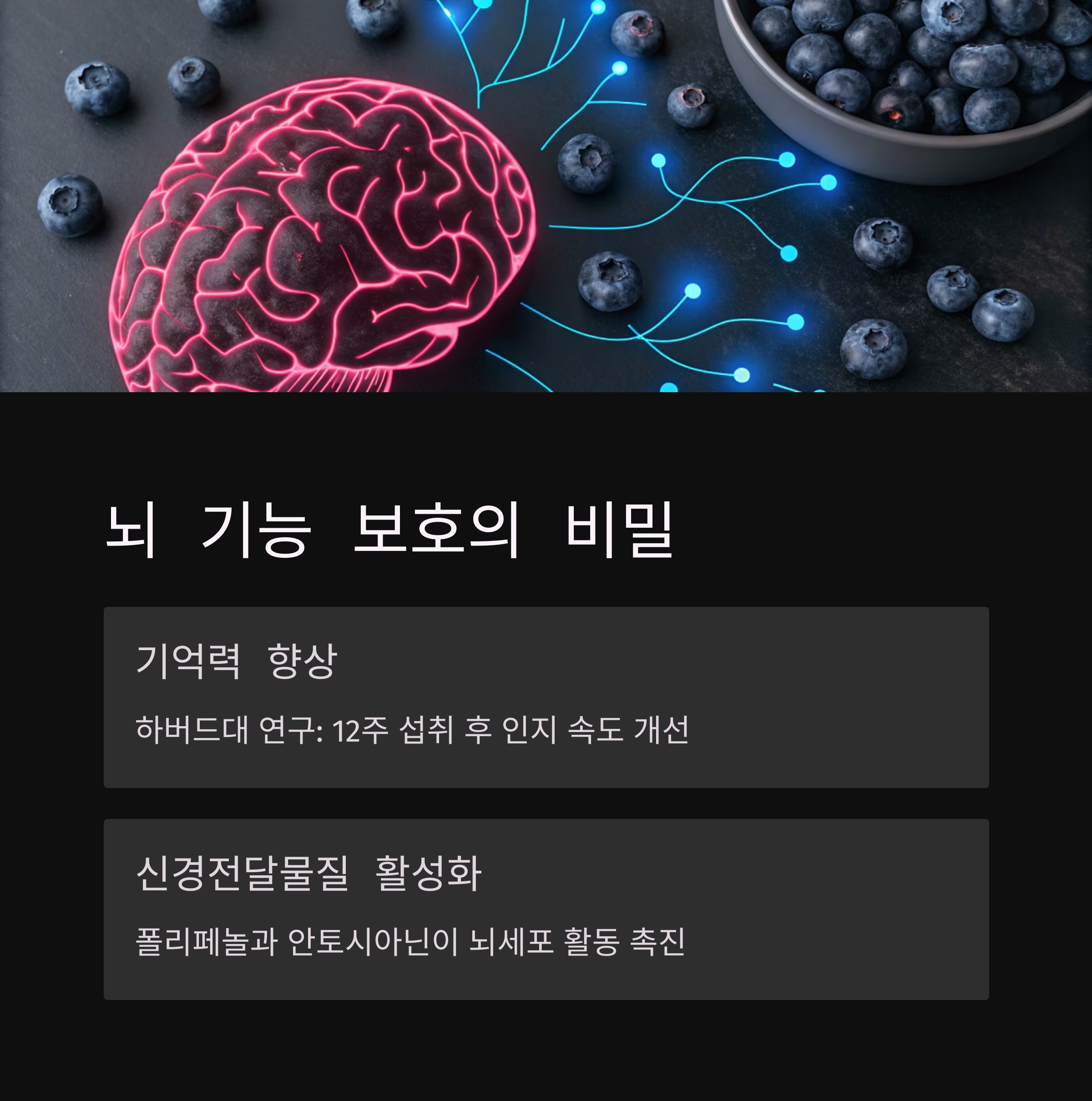 | 인지력 향상 | 폴리페놀 | 하버드대 임상 실험 |