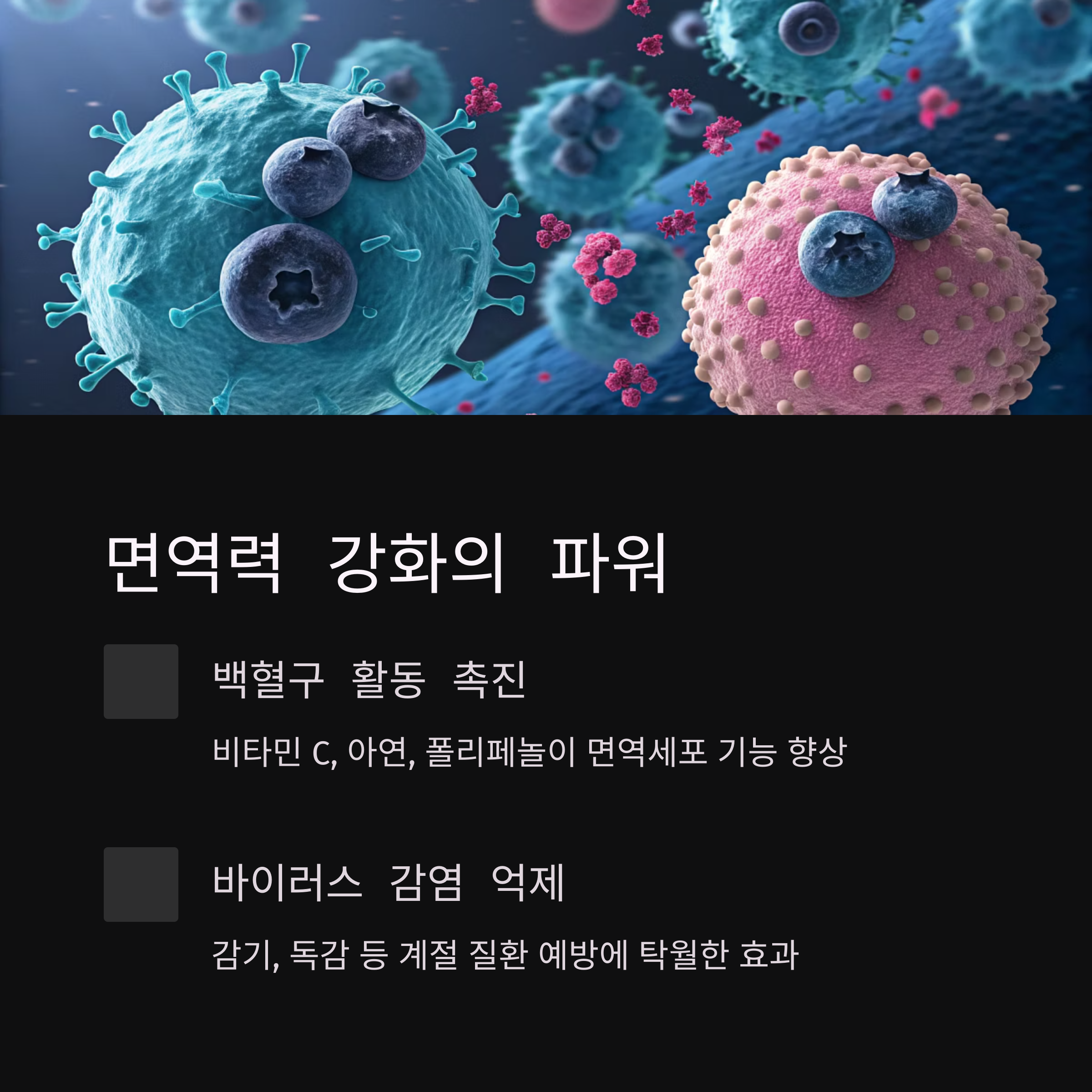 블루베리는 비타민 C, 아연, 폴리페놀 등의 영양소로 구성되어 있어