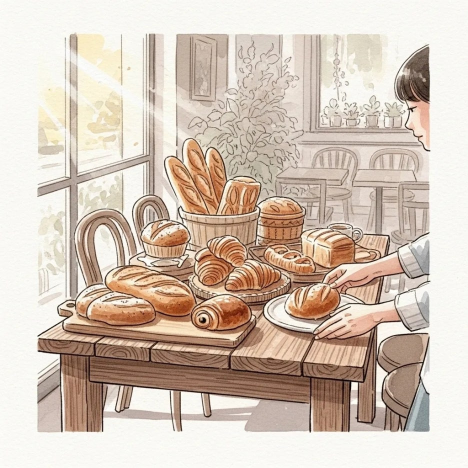 따스한 햇살 아래, 갓 구운 빵 냄새가 가득한 카페에서 좋아하는 빵을 마음껏 즐길 수 있다면 어떨까요?
