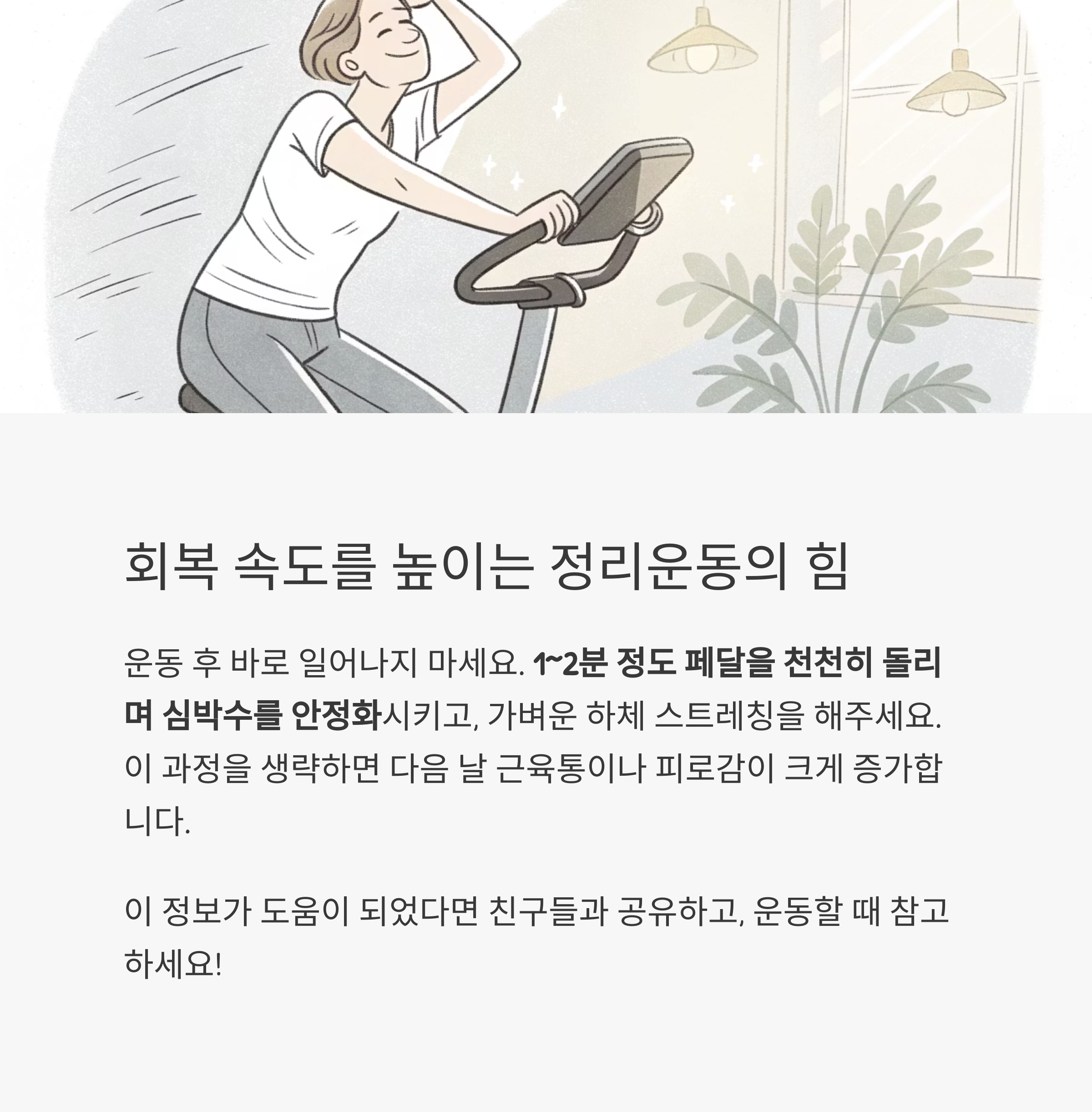 이 과정을 생략하면 다음 날 근육통이나 피로감이 크게 증가할 수 있습니다.