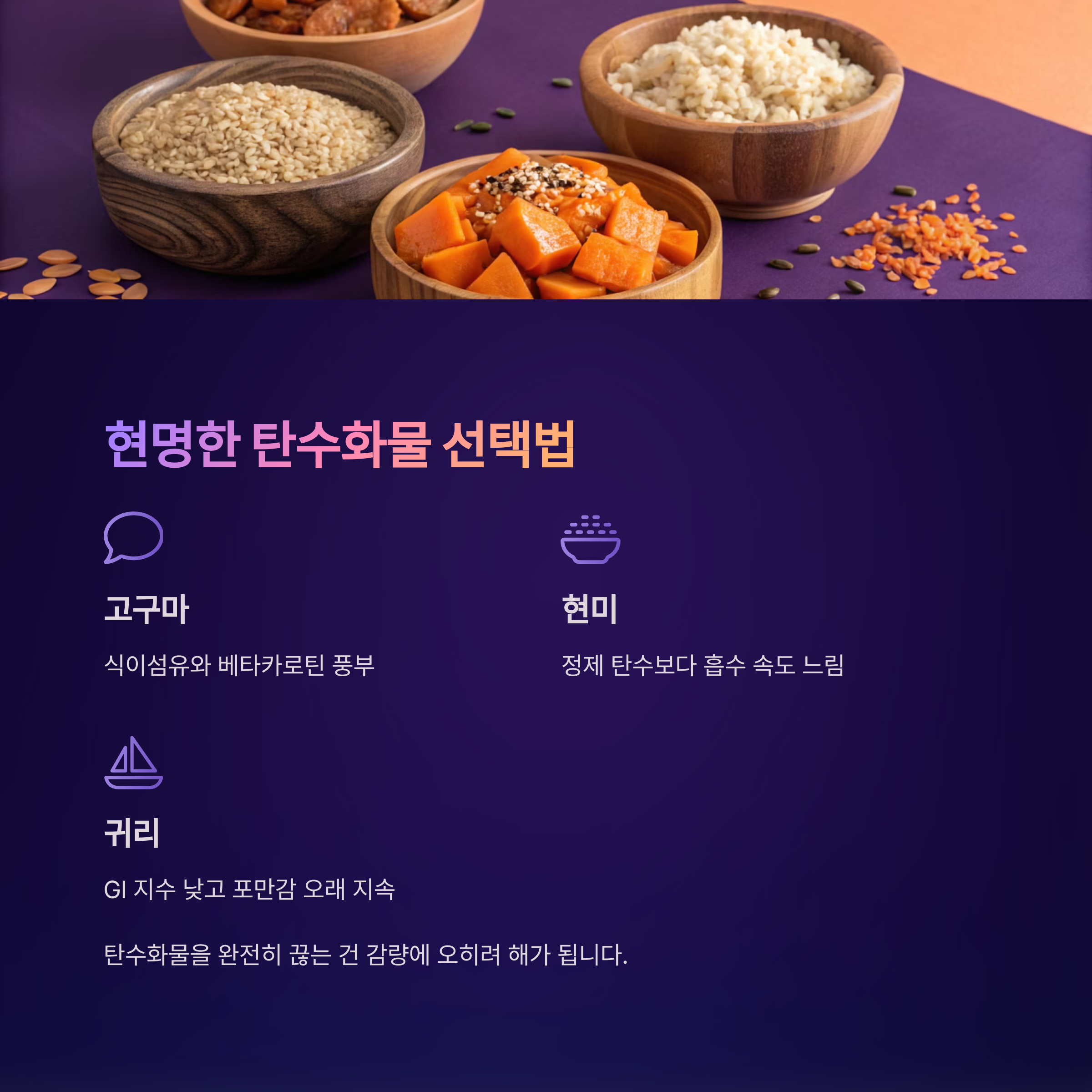 | 고구마 | 식이섬유와 베타카로틴 풍부 |