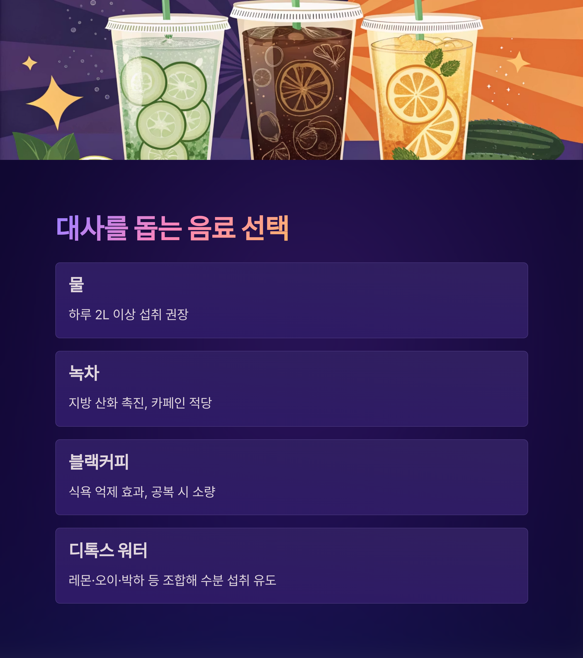 당분 높은 음료는 피하고, 대사를 돕는 음료로 바꿔보세요
