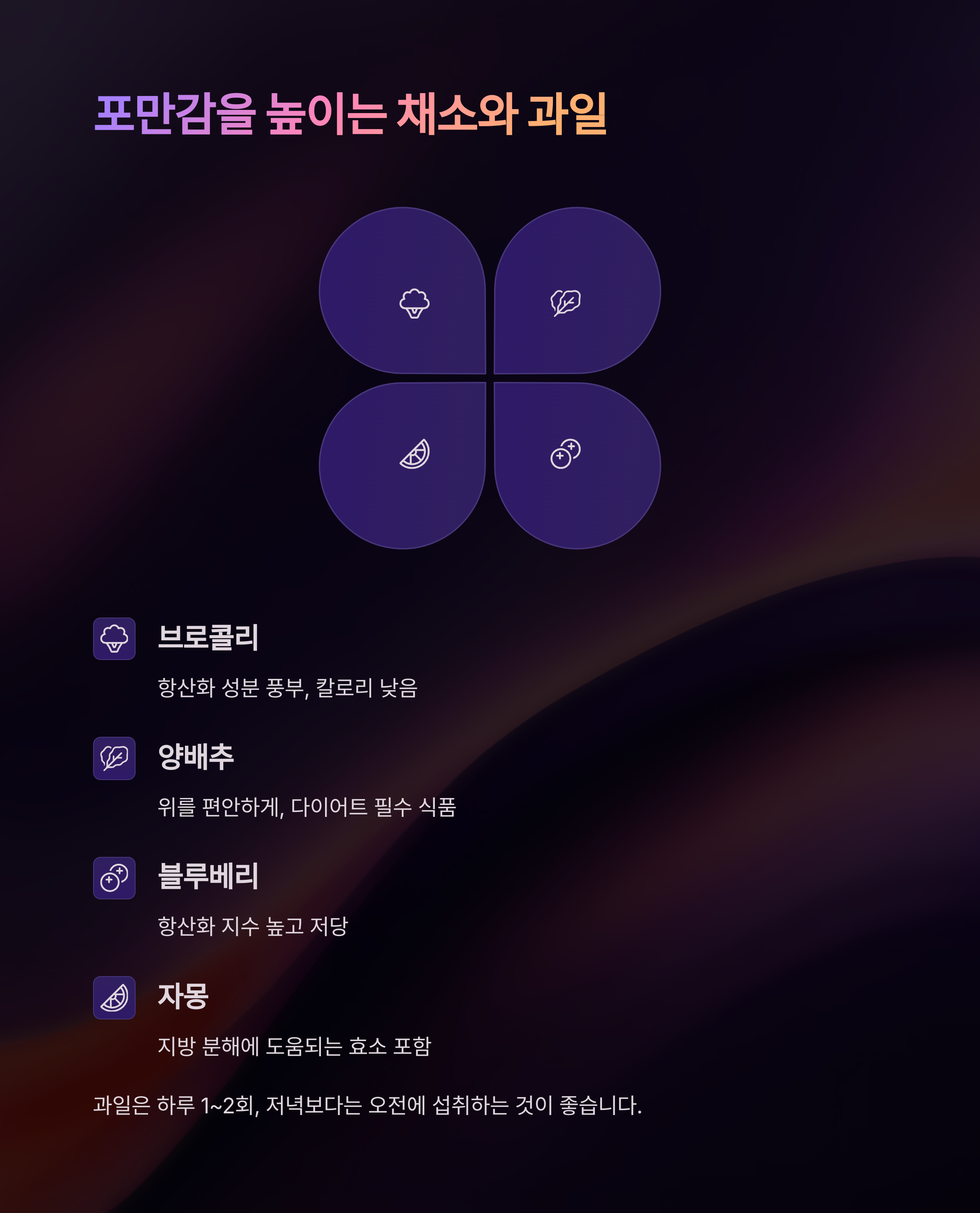 과일은 하루 1~2회, 저녁보다는 오전에 섭취하는 것이 좋습니다