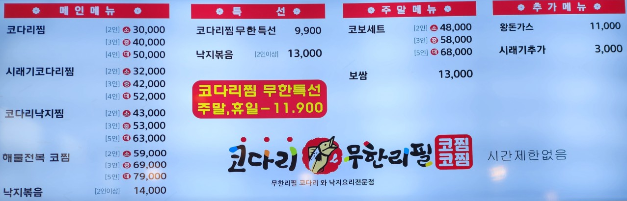 - 코다리찜: 30,000 ~ 50,000원