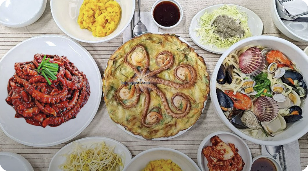해상궁에서는 낙지볶음 외에도 다양한 해산물 요리를 즐길 수 있어요. 특히, 낙지와 함께 나오는 다양한 반찬들이 인상적이에요. 매콤한 낙지볶음과 함께 제공되는 해물파전은 바삭하고 고소한 맛이 일품이에요.