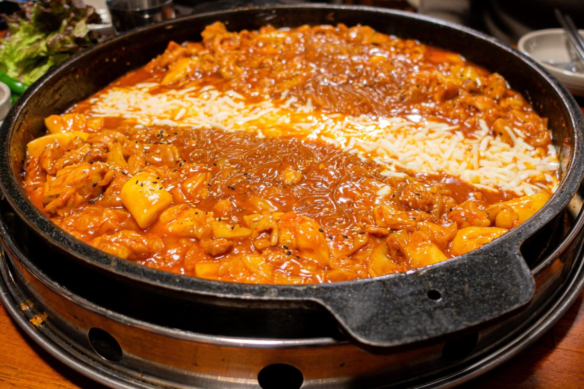 이곳은 오리 고기를 양념에 볶아내어 깊은 맛을 내는