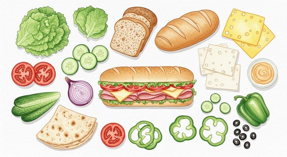 예를 들어, 빵은 위트 브레드가 칼로리가 낮은 편이고, 마요네즈나 랜치 같은 고칼로리 소스 대신 올리브 오일이나 식초, 소금, 후추를 선택하면 칼로리를 낮출 수 있어요.