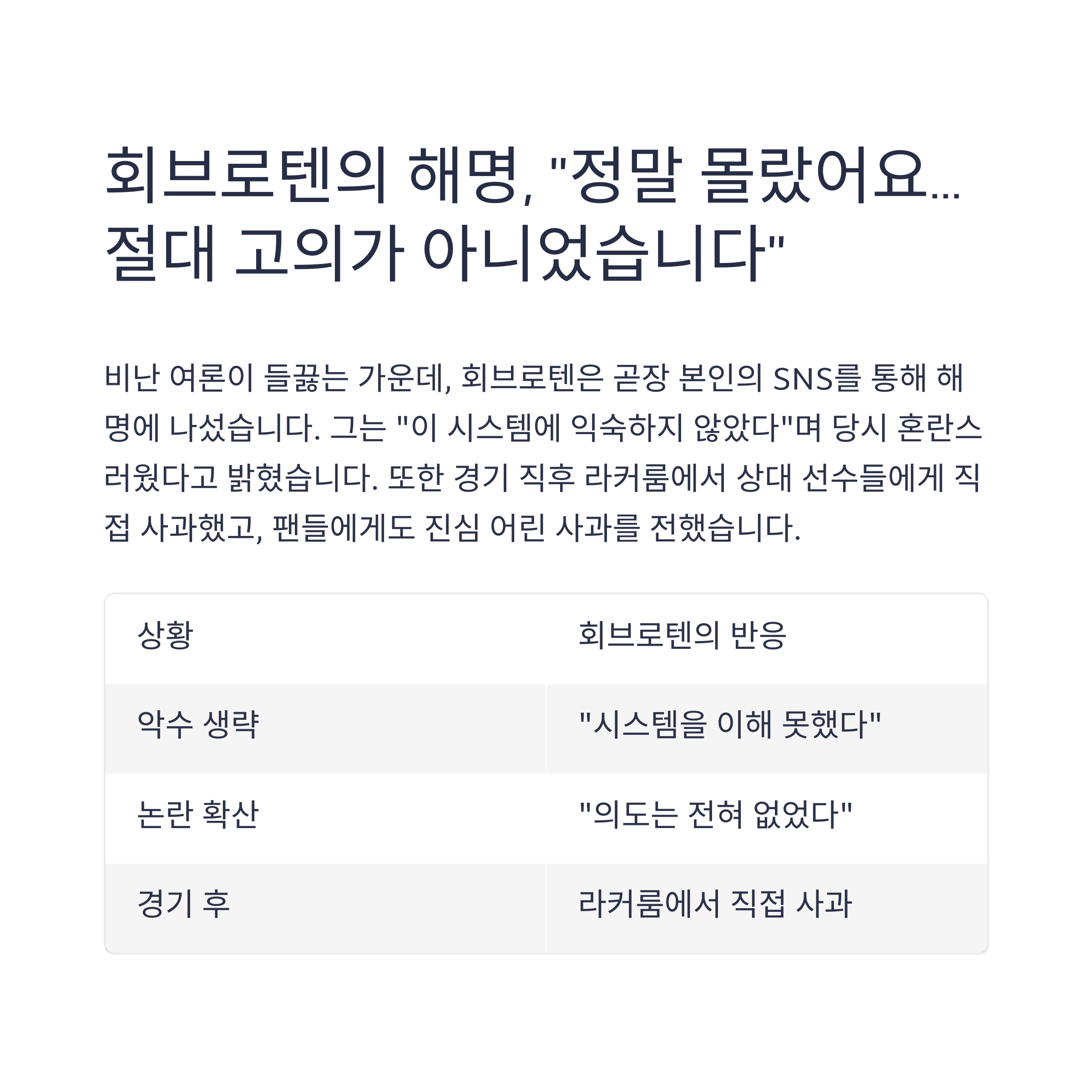 회브로텐의 해명, “정말 몰랐어요... 절대 고의가 아니었습니다”
