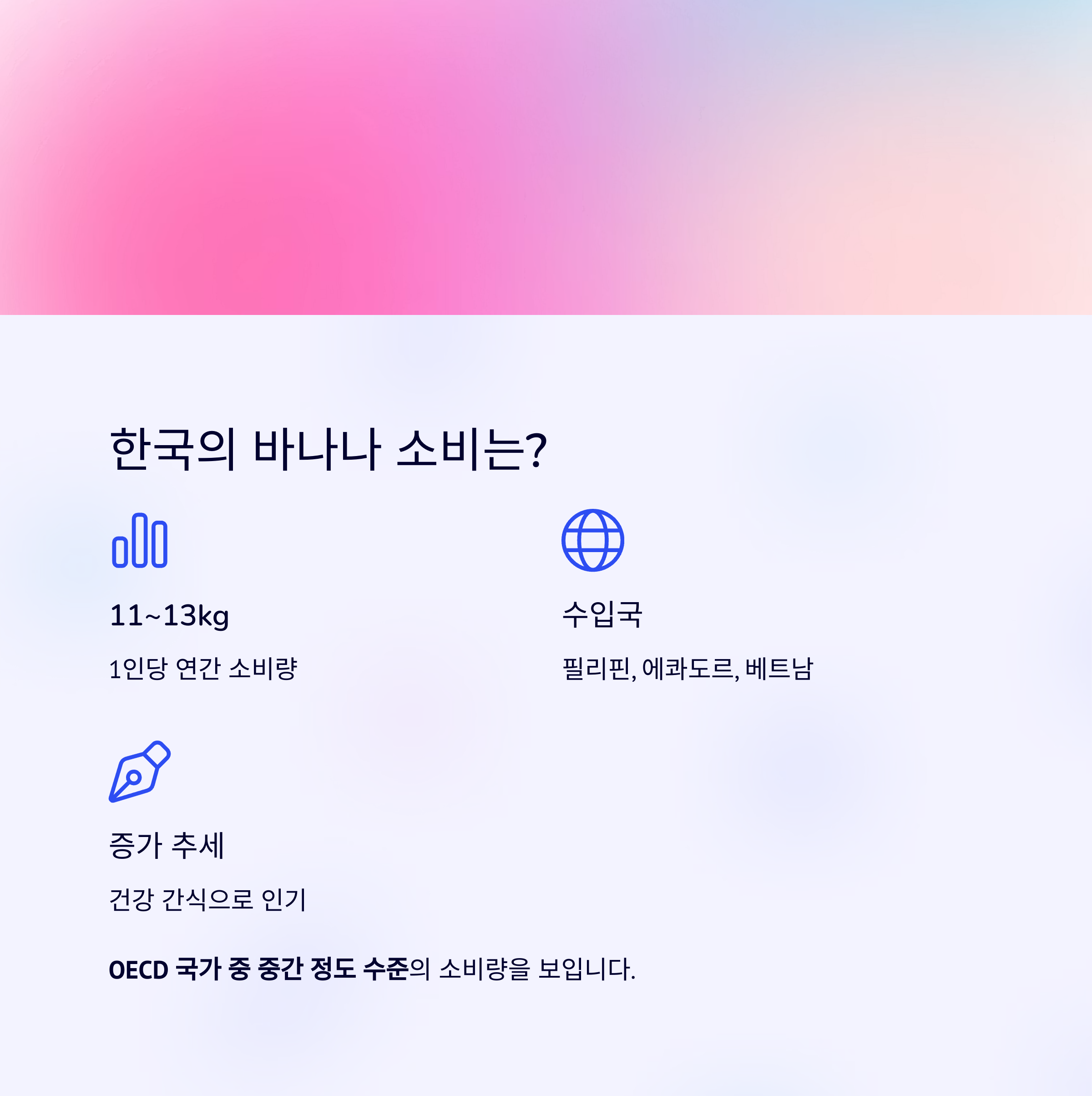 한국의 1인당 바나나 소비량은 약 11~13kg 수준으로
