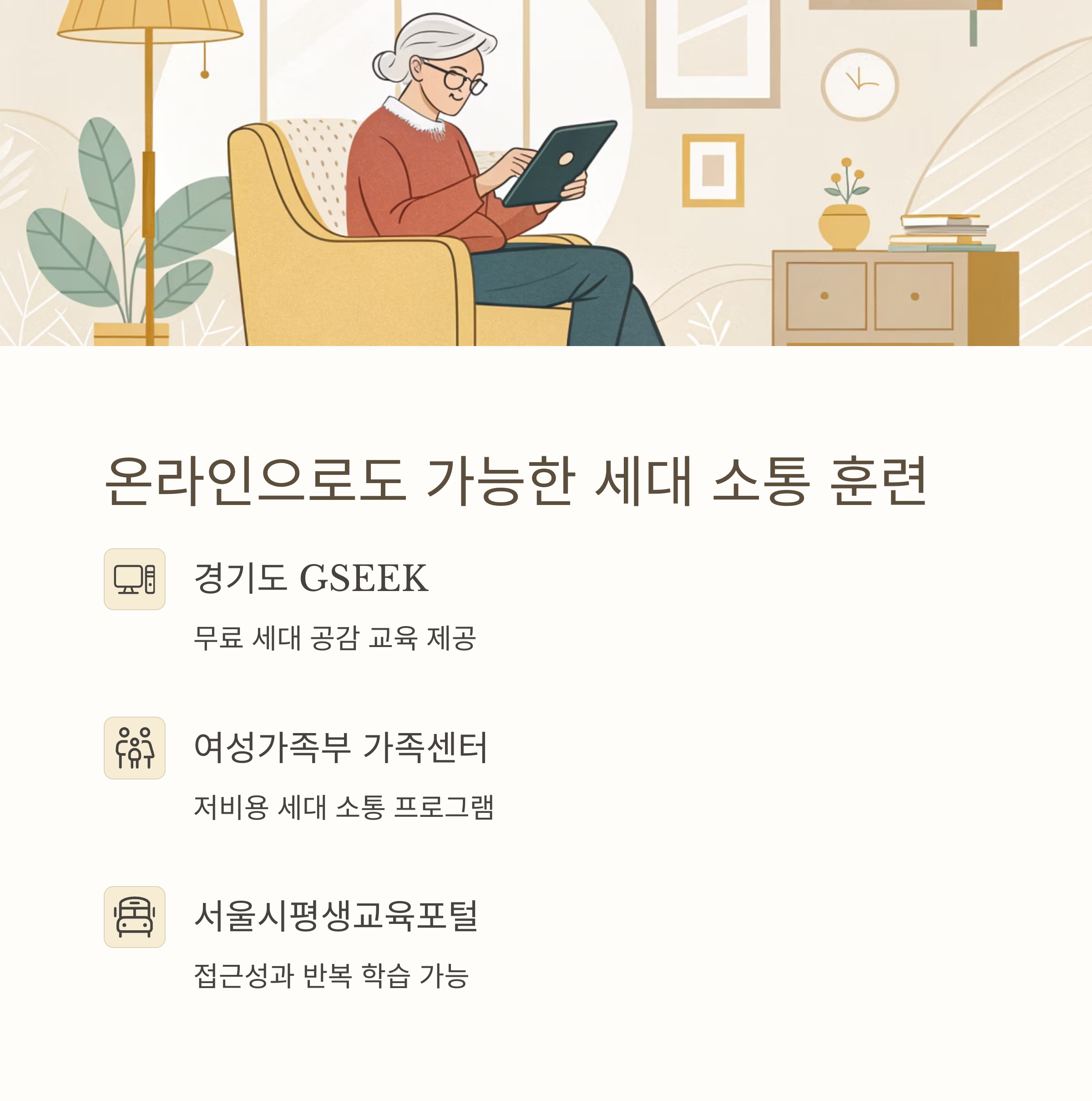 무료 또는 저비용으로 참여 가능한 세대 공감 교육을 제공하고 있습니다
